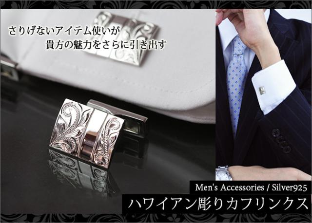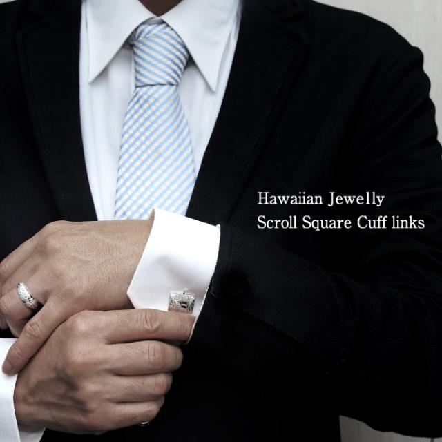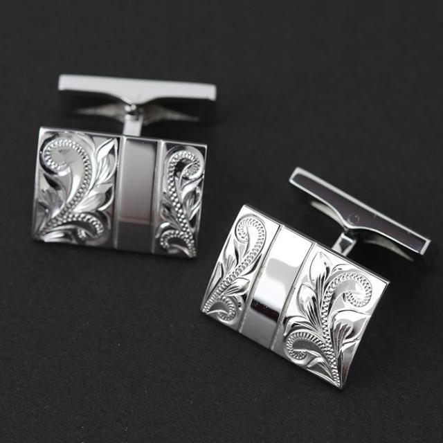 ハワイアンジュエリー カフリンクス カフスボタン スーツ シャツ Yシャツ スクエア 刻印 無料 誕生石入れ可 シルバー925 ロジウムコーティング 結婚式 結婚 BY THE SEA バイザシー 彼氏 夫 男性 メンズ 誕生日 プレゼント ホワイトデー 卒業式 入学式 【品番:SCB2202】