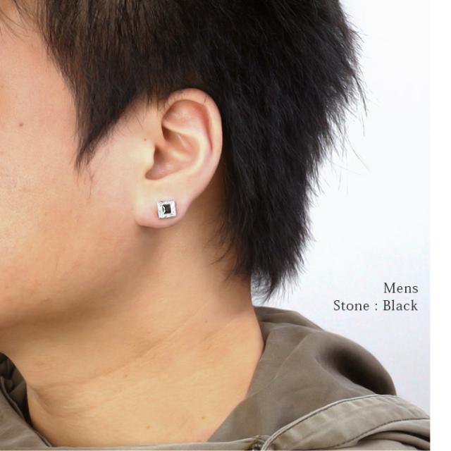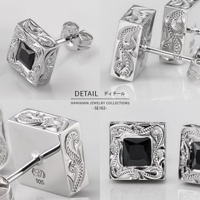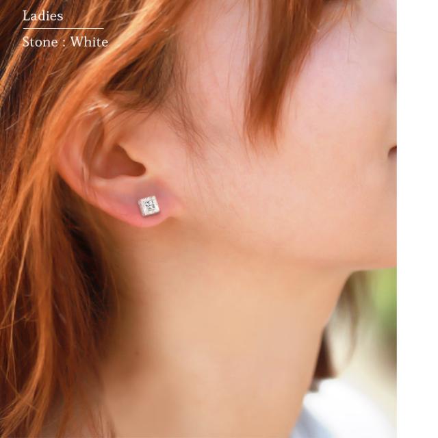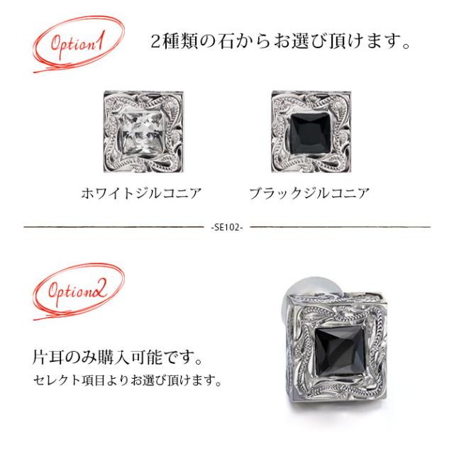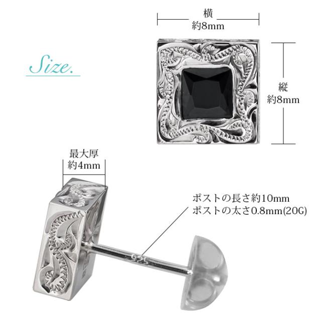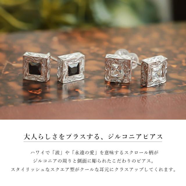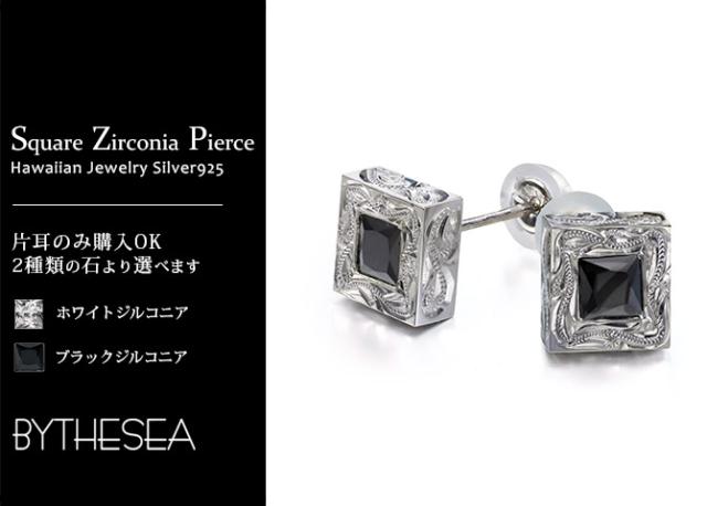 ハワイアンジュエリー ピアス 一粒 ホワイト ブラック ジルコニア 選べる 片耳 一個購入可 スタッドピアス スクエア シルバー925 ロジウムコーティング キャッチ シンプル 20G ゲージ BY THE SEAバイザシー メンズ レディース プレゼント クリスマス 【品番:SE102】