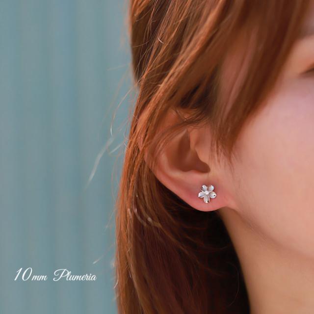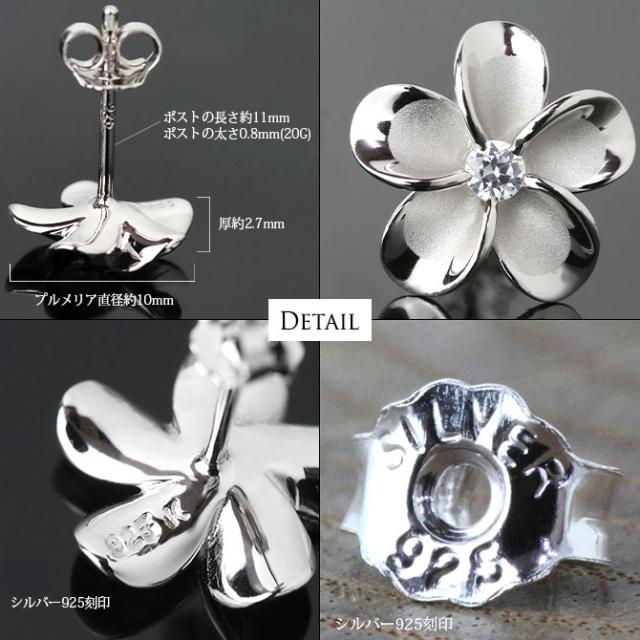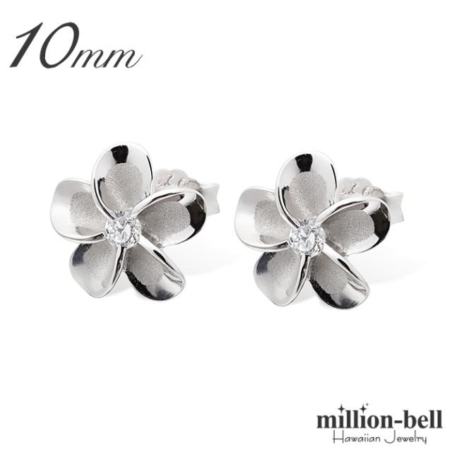 ハワイアンジュエリー ピアス ハワイアン ピアス プルメリアピアス 花 10mm ジルコニア シルバー925 ロジウムコーティング キャッチ メール便 20G ゲージ 彼女 妻 女性 レディース 誕生日 プレゼント ホワイトデー 卒業式 入学式 【品番:SE53228】