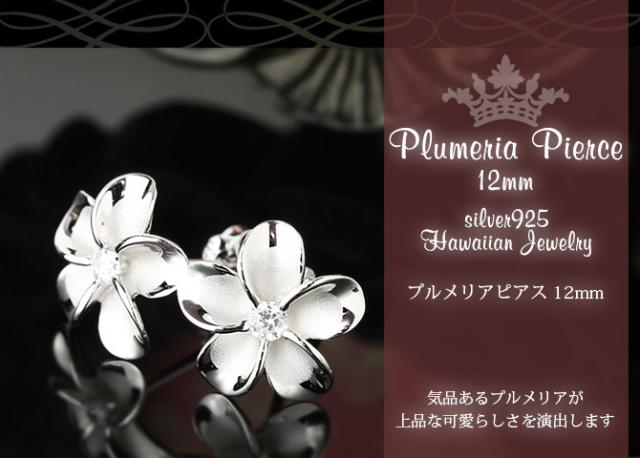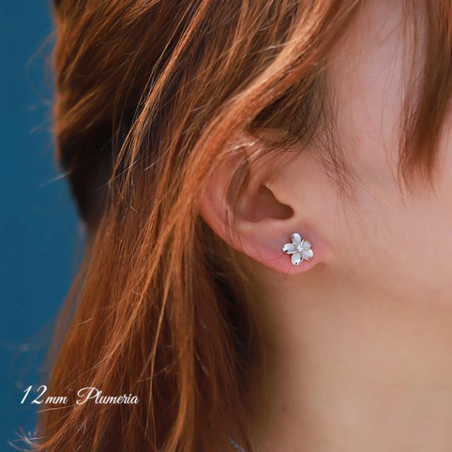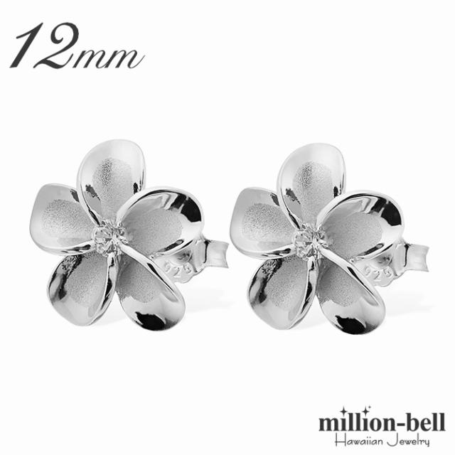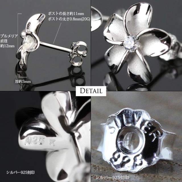 ハワイアンジュエリー ピアス ハワイアン ピアス プルメリアピアス 花 12mm ジルコニア シルバー925 ロジウムコーティング キャッチ メール便 20G ゲージ 彼女 妻 女性 レディース 誕生日 プレゼント 入学式 就職 お祝い 新生活 【品番:SE53238】