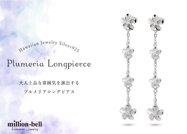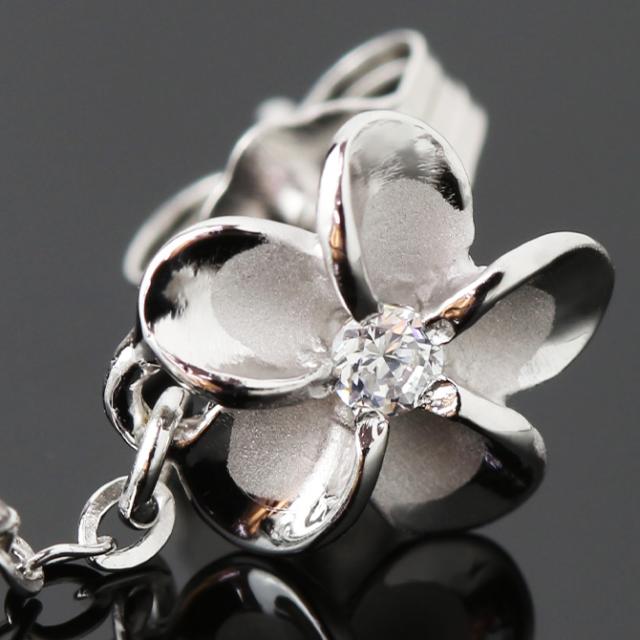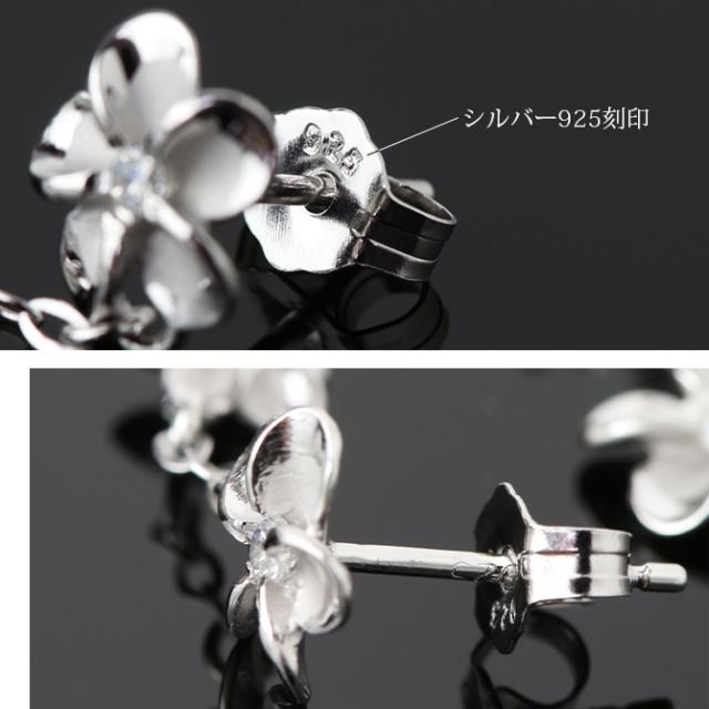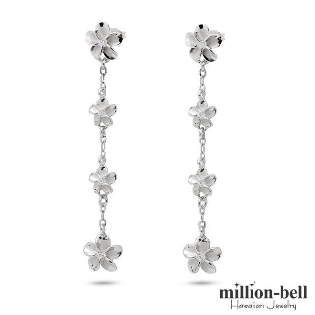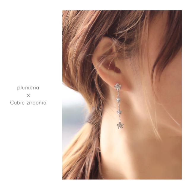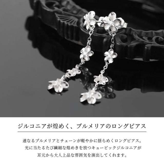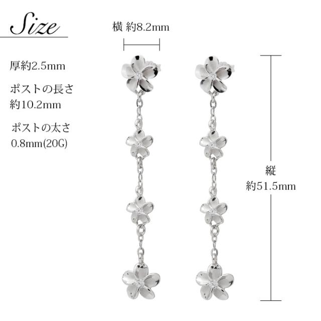 ハワイアンジュエリー ピアス ハワイアン ピアス 4連 プルメリア ロングピアス ジルコニア シルバー925 ロジウムコーティング キャッチ メール便 20G ゲージ 彼女 妻 女性 レディース 誕生日 プレゼント クリスマス 【品番:SE56088】