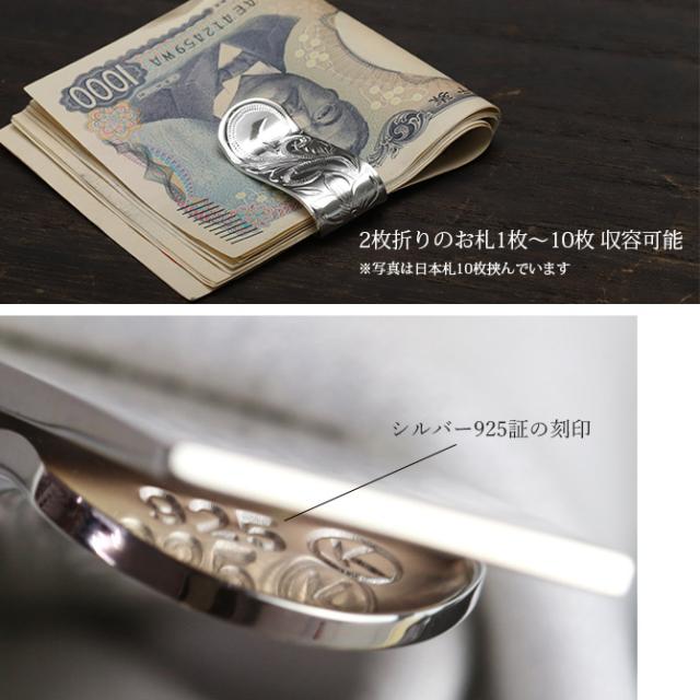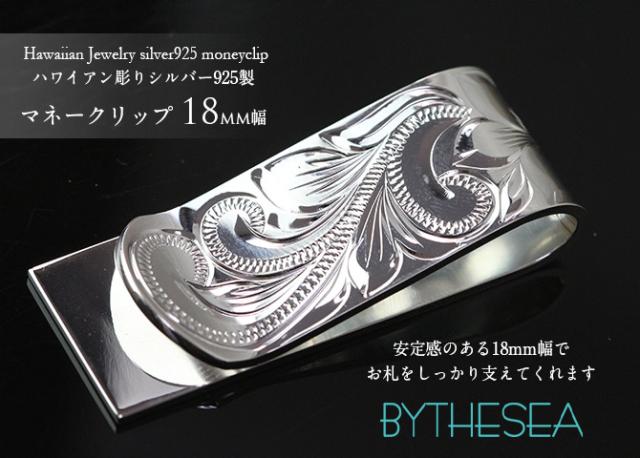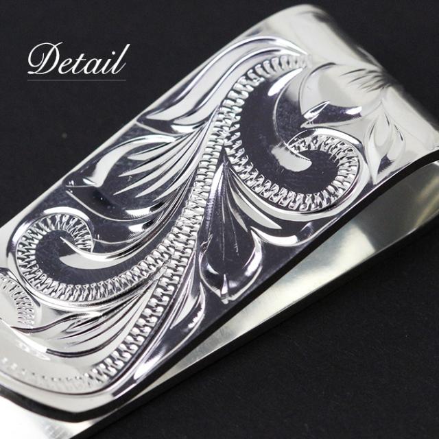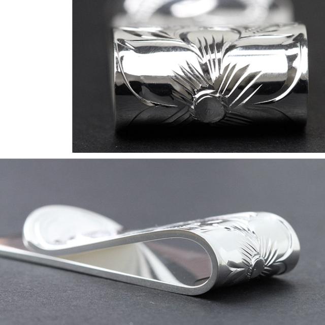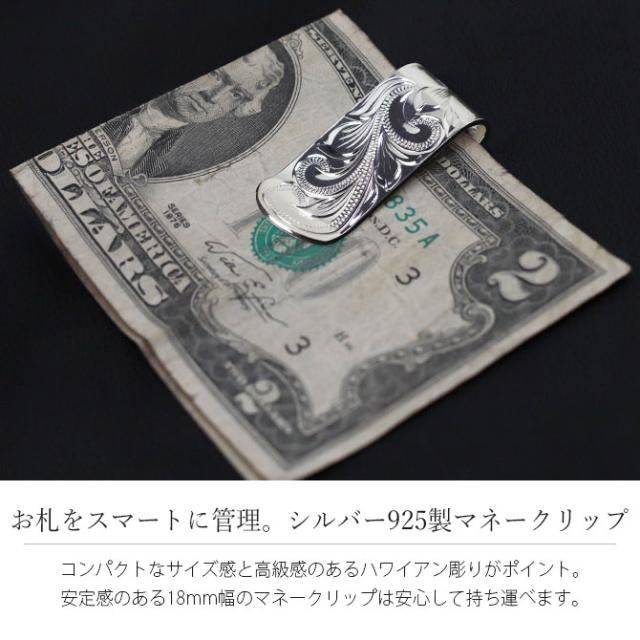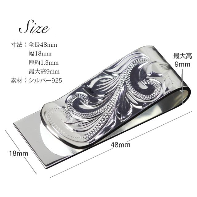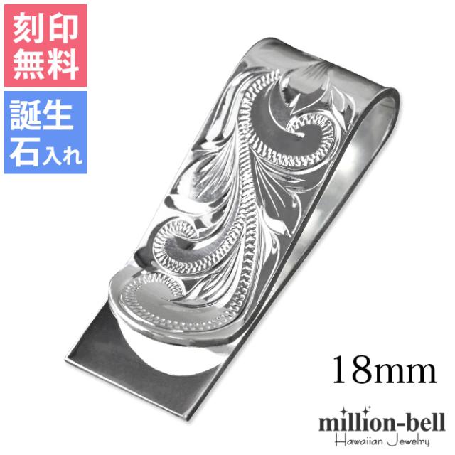 マネークリップ 幅18mm 名入れ 刻印 無料 誕生石入れ可 シルバー925 札ばさみ ハワイアンジュエリー スクロール柄 シンプル スマート会計 札入れ ブランド メンズ レディース 誕生日 プレゼント クリスマス 【品番:SMCM106】