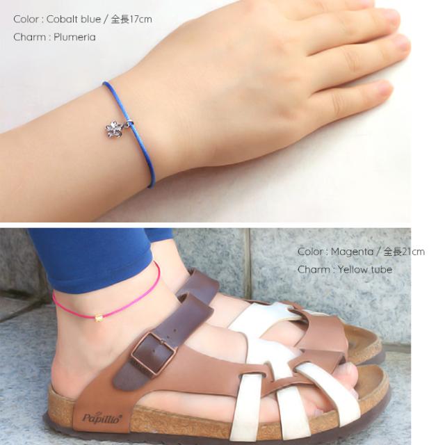 カラーバリエーション豊富!美しい発色のサテンコードとキュートなチャームのブレスレット&アンクレット