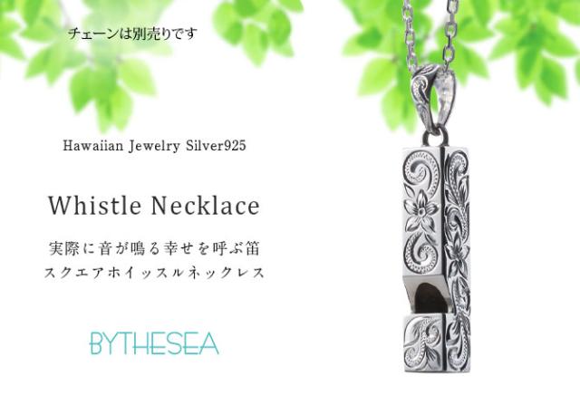ハワイアンジュエリー シルバー ペンダント トップ 刻印 無料 誕生石入れ可 ホイッスル スクエア四角 笛 本当に鳴る シルバー925 ネックレス チェーン別売 ペンダントヘッド BY THE SEA バイザシー メンズ レディース 誕生日 プレゼント ホワイトデー 【品番:SP318】