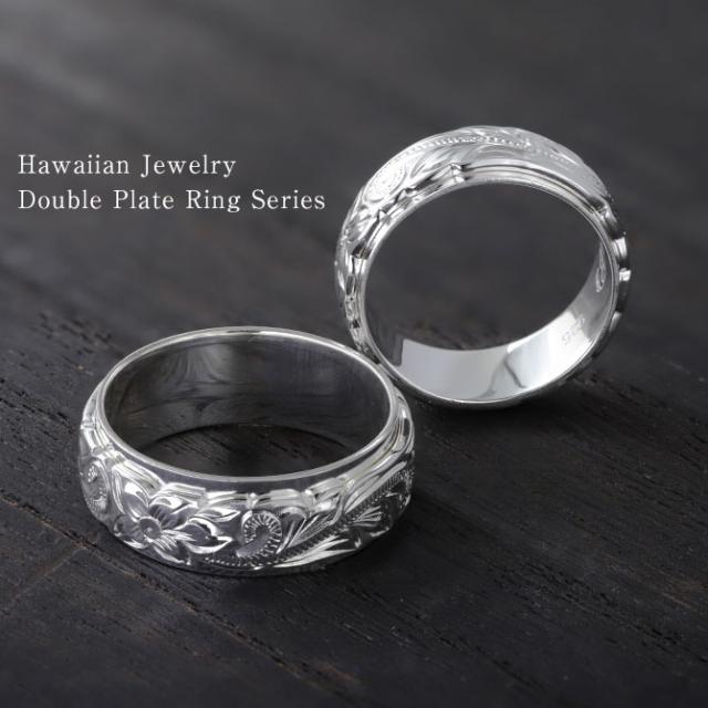 ハワイアンジュエリー シルバー925 ペアリング ダブルプレート 約8mm幅 指輪