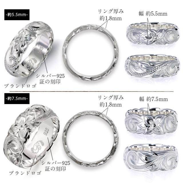 ペアリング 2本セット ハワイアンジュエリー 刻印 無料 誕生石入れ可 指輪 29号まで 太め 幅約5.5mm 幅約7.5mm シルバー925 ギフト対応可 ピンキーリング 大きいサイズ ハワイアンジュエリー リング カップル 夫婦 プレゼント クリスマス 【品番:SR202-SR203P】