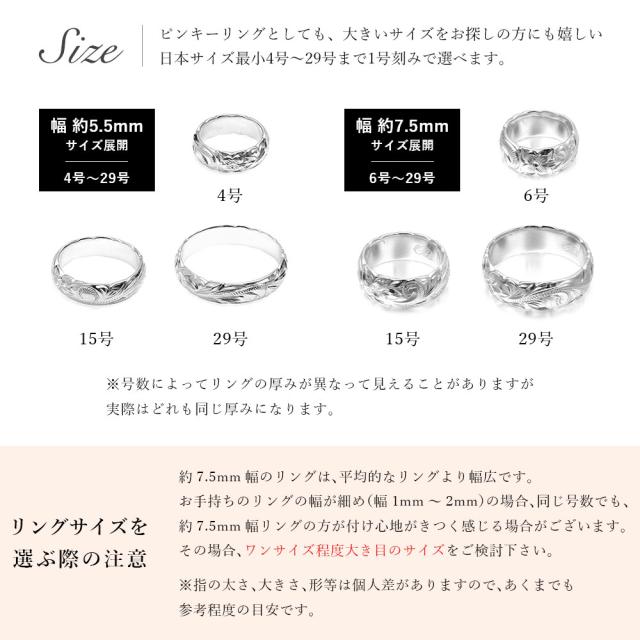 日本サイズ:【約5.5mm幅】4号〜29号 / 【約7.5mm幅】6号〜29号