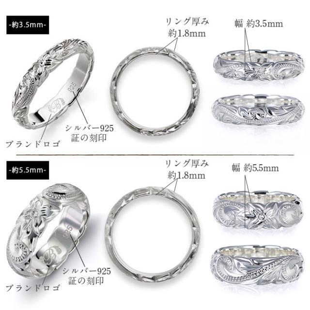ハワイアンジュエリー シルバー925 ペアリング カットアウト 約3.5mm幅&約5.5mm幅 指輪