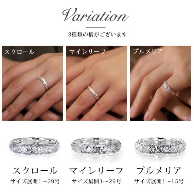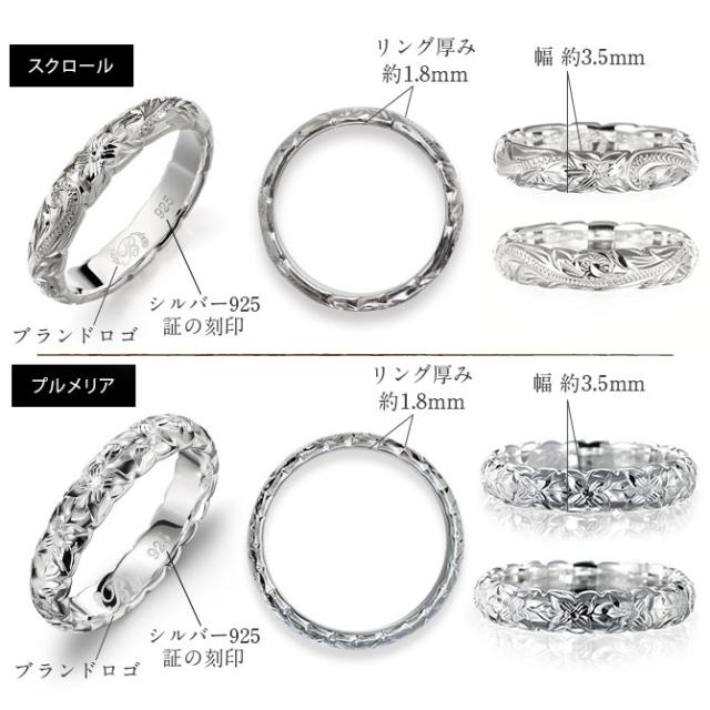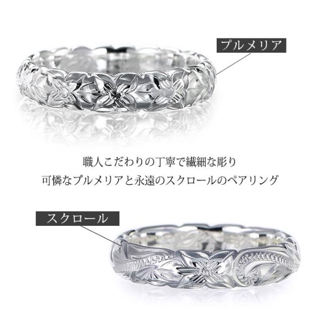 ハワイアンジュエリー シルバー925 ペアリング スクロール&プルメリア 指輪