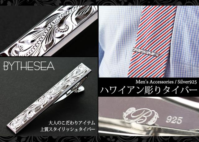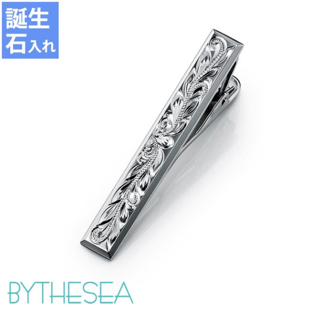 ネクタイピン ネクタイバー 誕生石入れ可 シルバー925 ロジウムコーティング ハワイアンジュエリー オリジナル ハワイアン彫り 結婚式 結婚 おしゃれ ビジネス シンプル BY THE SEA バイザシー 彼氏 夫 男性 メンズ 誕生日 クリスマス 【品番:STB2101】