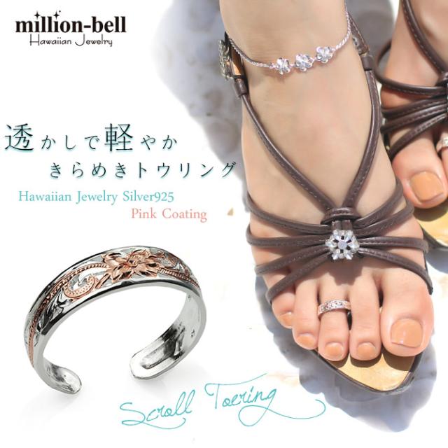 ハワイアンジュエリー トゥリング トゥーリング 足の指輪 フリーサイズ 透かし スクロール シルバー925 ピンクコーティング トウリング メール便 リング 彼女 妻 女性 レディース 誕生日 プレゼント クリスマス 【品番:TR1077】