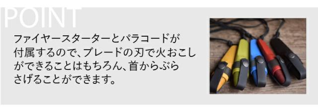 パラコード付きなので、ネックナイフとしての使用も可能。メタルマッチも付属しているので火をおこすこともできます。