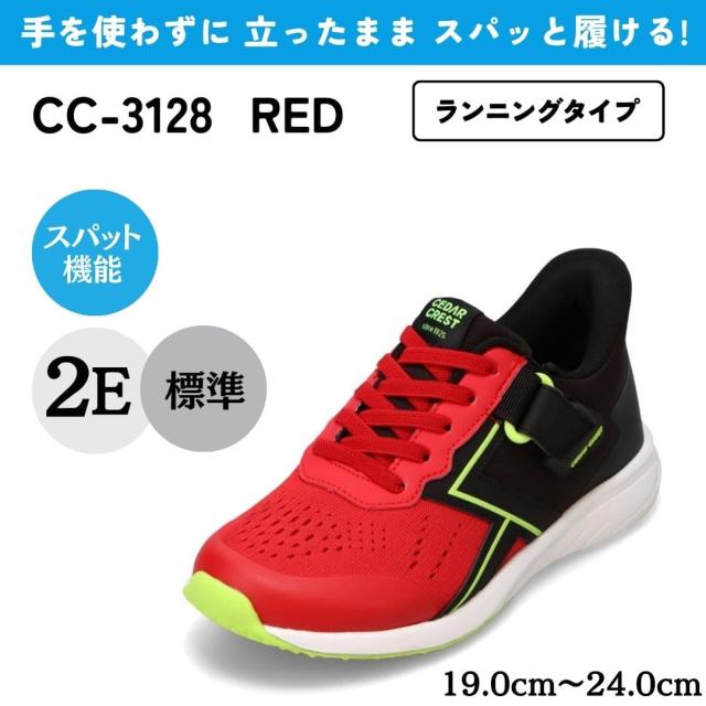 スパットシューズ 手を使わずに履ける キッズ スニーカー 運動 小学生 通学 通園 遠足 運動会 調整ベルト ローカット スリッポン ハンズフリー 着脱簡単 履きやすい シューズ 靴 レッド セダークレスト CEDAR CREST CC-3128