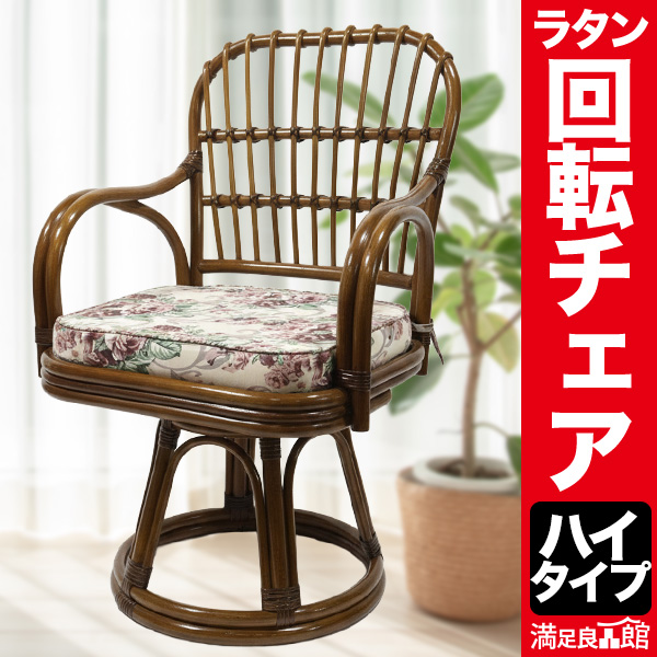 ハイタイプ ラタン回転チェア 座椅子 回転座椅子 籐 ラタン チェア 椅子 1人掛け 満足良品館 全国送料無料