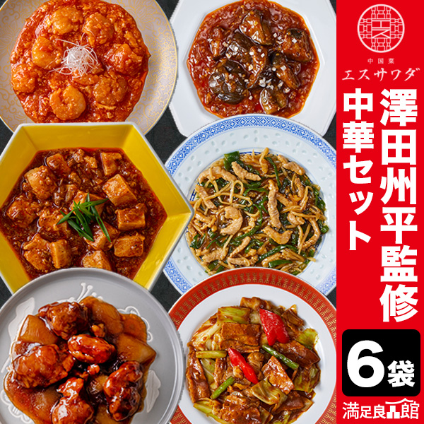 6袋 澤田シェフ監修中華セット 大海老のチリソース 本格四川麻婆豆腐 回鍋肉 麻婆茄子 青椒肉絲 黒酢酢豚 エビチリ 海老 麻婆豆腐 四川 酢豚 餃子 肉汁 澤田シェフ 中華 中華料理 本格中華 満足良品館 全国送料無料