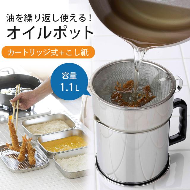 NEW 油をきれいにする オイルポット 1.1L (黒) 日本製 シンプル 油こし 活性炭 臭い吸着 臭いカット ポット ステンレス 下村企販 油汚れも ニオイも カット 燕三条 ツバメ 国産