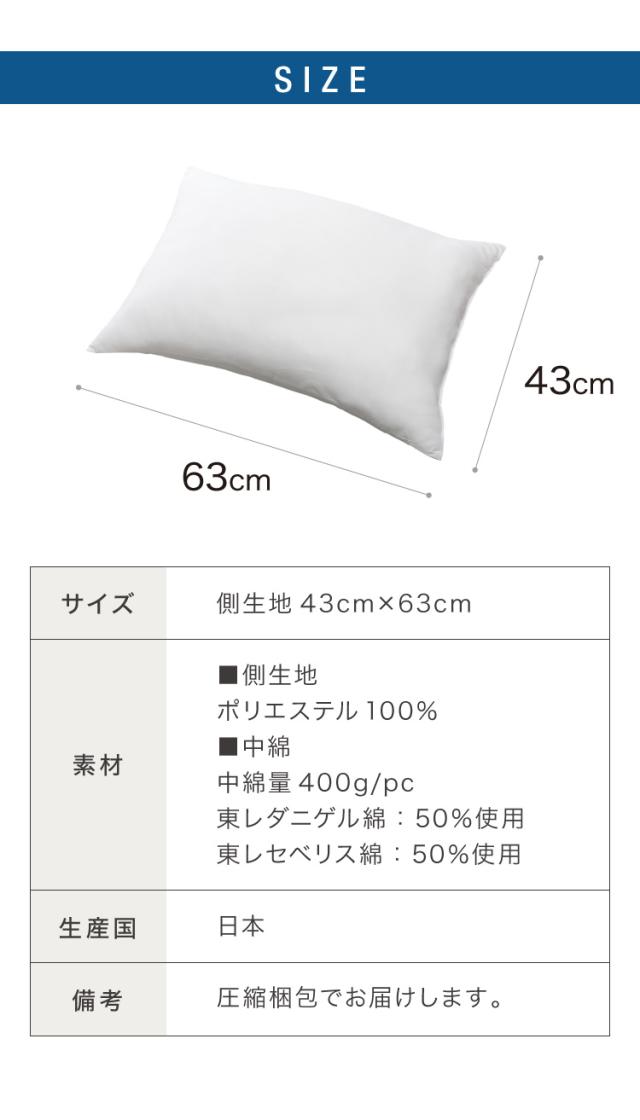 ウォッシャブル枕 43×63cm 日本製 東レ ダニゲル セベリス TORAY 東レ中綿使用 抗菌 防臭 保温 軽量 かさ高 弾力性 ホテル仕様 肩こり 首こり 国産 安眠 マクラ まくら 洗える ヌード ヌード枕【送料無料】