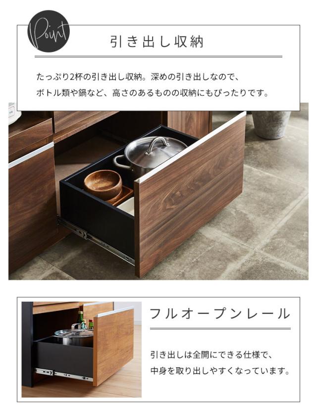 引き出しは奥の物までとりやすいフルオープンレールを採用してます。