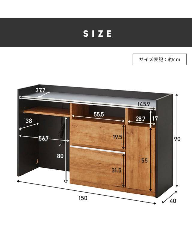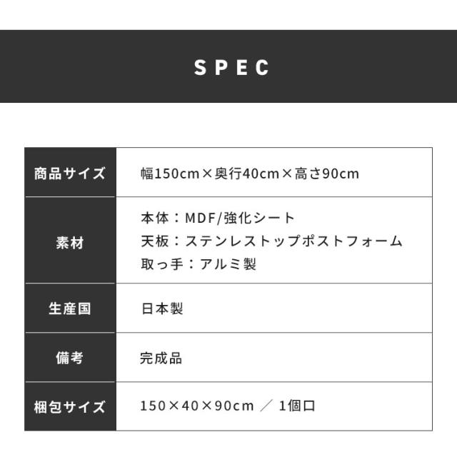 幅150cm×奥行40cm×高さ90cm