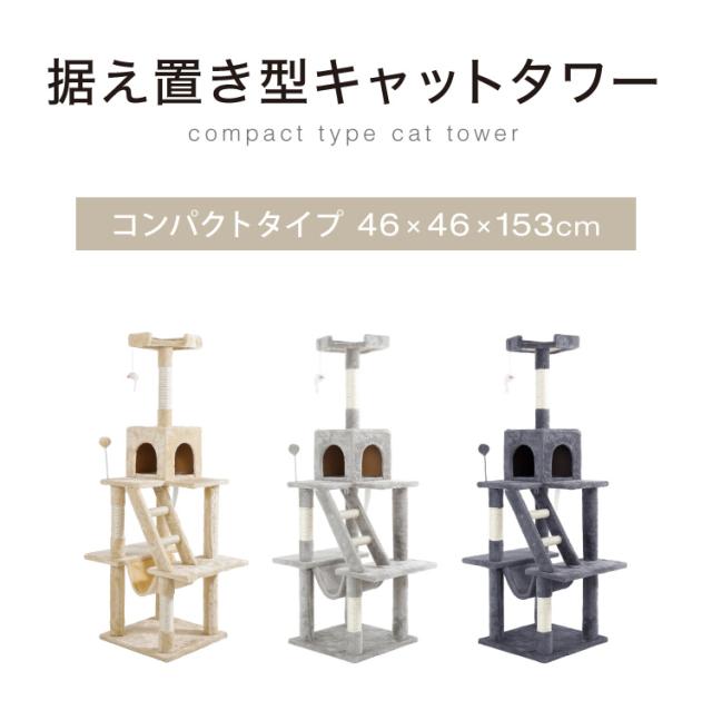 キャットタワー スリム 据え置き ハンモック付き 46×46cm 高さ153cm 省スペース おしゃれ 猫用品 ペット用品 タワーb8-cattower-01b8-cattower-01【送料無料】