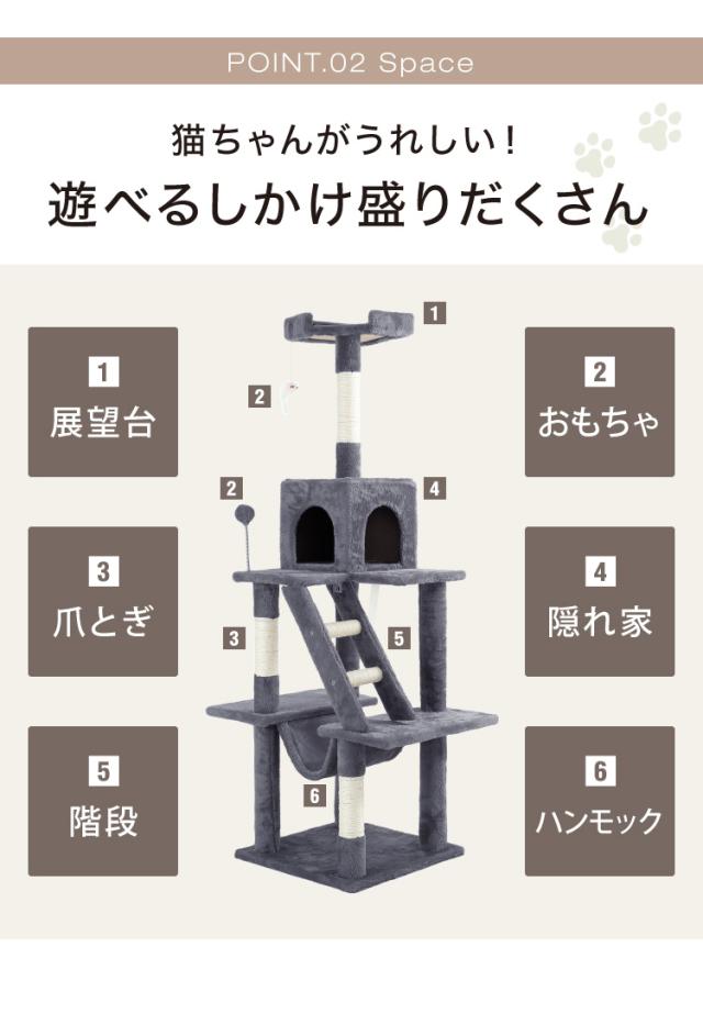 キャットタワー、キャットハウス、キャットツリー、猫タワー、据え置き、ハウス、ハンモック、猫、ねこ、ネコ、爪とぎ、つめとぎ、ベッド、おもちゃ、多頭飼い、シンプル、かわいい、インテリア、ペット、ペット用品、猫用品、省スペース、置き型、低ホルムアルデヒド、エコテックス、FSC認証、頑丈、安定