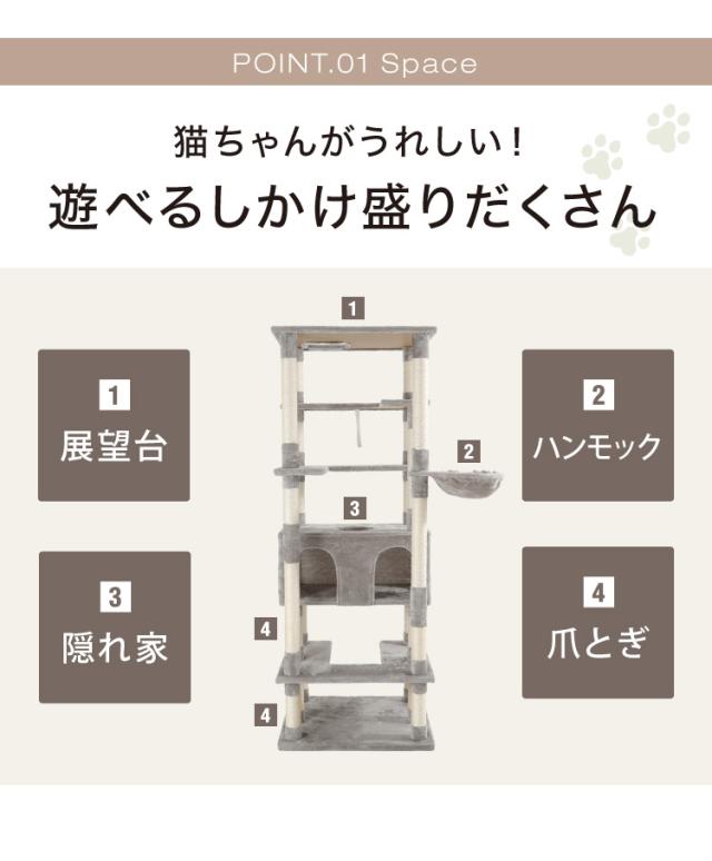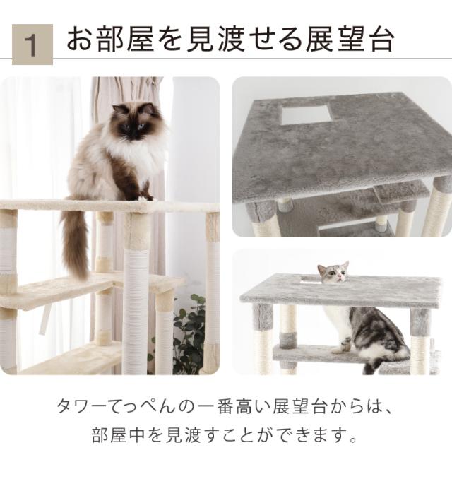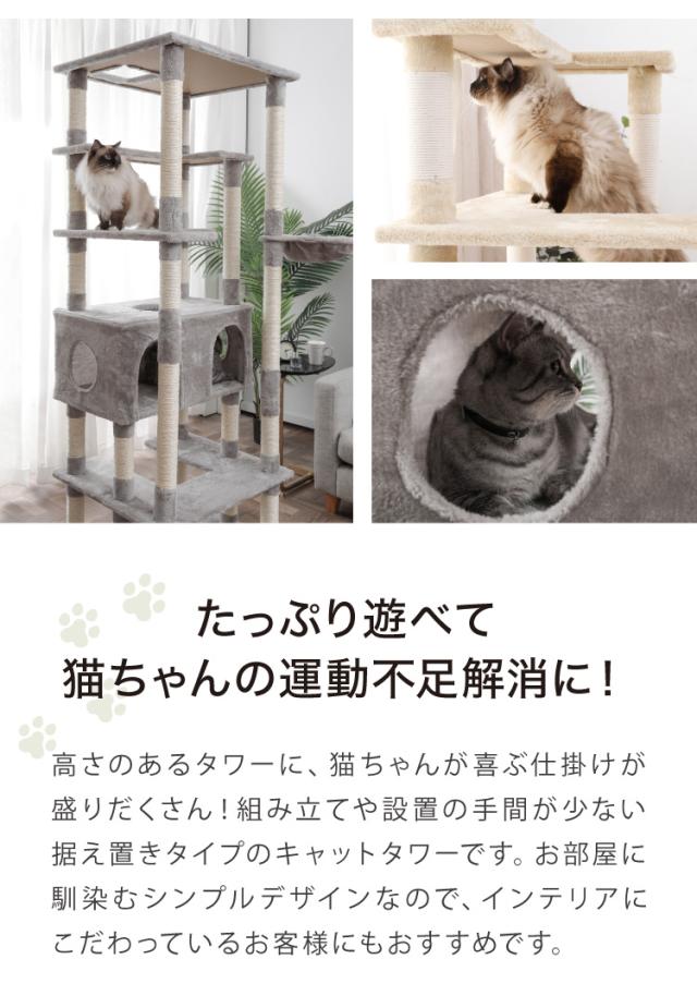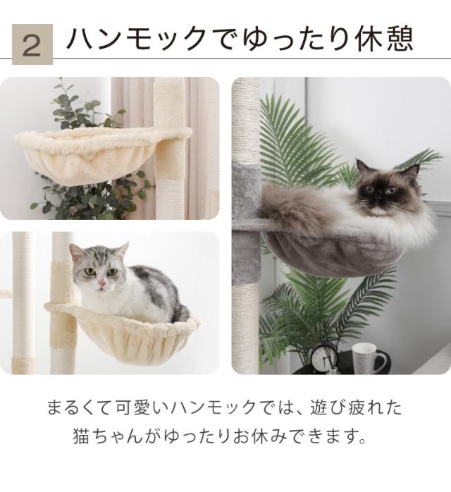 キャットタワー、キャットハウス、キャットツリー、猫タワー、据え置き、ハウス、ハンモック、猫、ねこ、ネコ、爪とぎ、つめとぎ、ベッド、おもちゃ、多頭飼い、シンプル、かわいい、インテリア、ペット、ペット用品、猫用品、省スペース、置き型、低ホルムアルデヒド、エコテックス、FSC認証、頑丈、安定