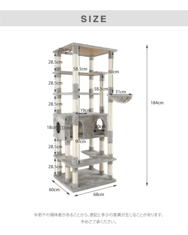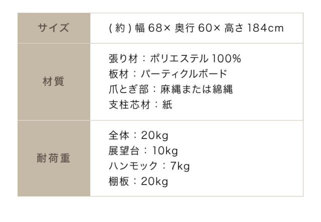 キャットタワー スリム 据え置き 大型猫 ハンモック付き 68×60cm 高さ184cm 省スペース おしゃれ 猫用品 ペット用品 タワーb8-cattower-10b8-cattower-10【送料無料】