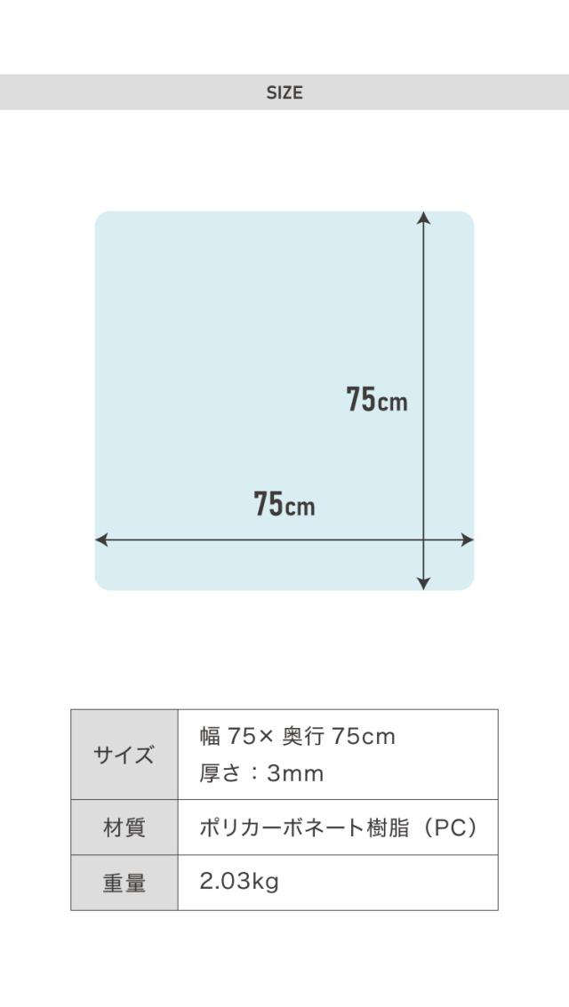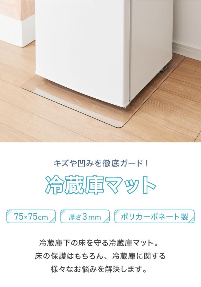 冷蔵庫マット ポリカーボネート XL 75×75cm 3mm厚 防カビ 床保護 キズ防止 防汚 撥水 防水 防振 防音 耐衝撃 床暖房対応 クッションフロア対応 550L~600L冷蔵庫対応 冷蔵庫パネル クリアマット【送
