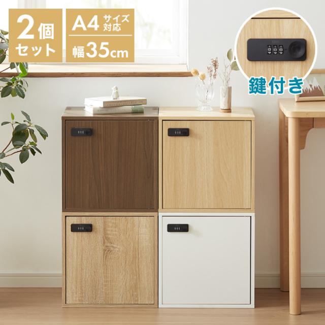 キューブボックス A4 2個セット 木目 鍵付き 扉付き 幅35cm レイアウト自由自在 ダイヤル ダイヤル錠付きボックス 収納 収納ボックス A4サイズ 本棚 ラック 収納ラック 鍵付きラック レイアウ