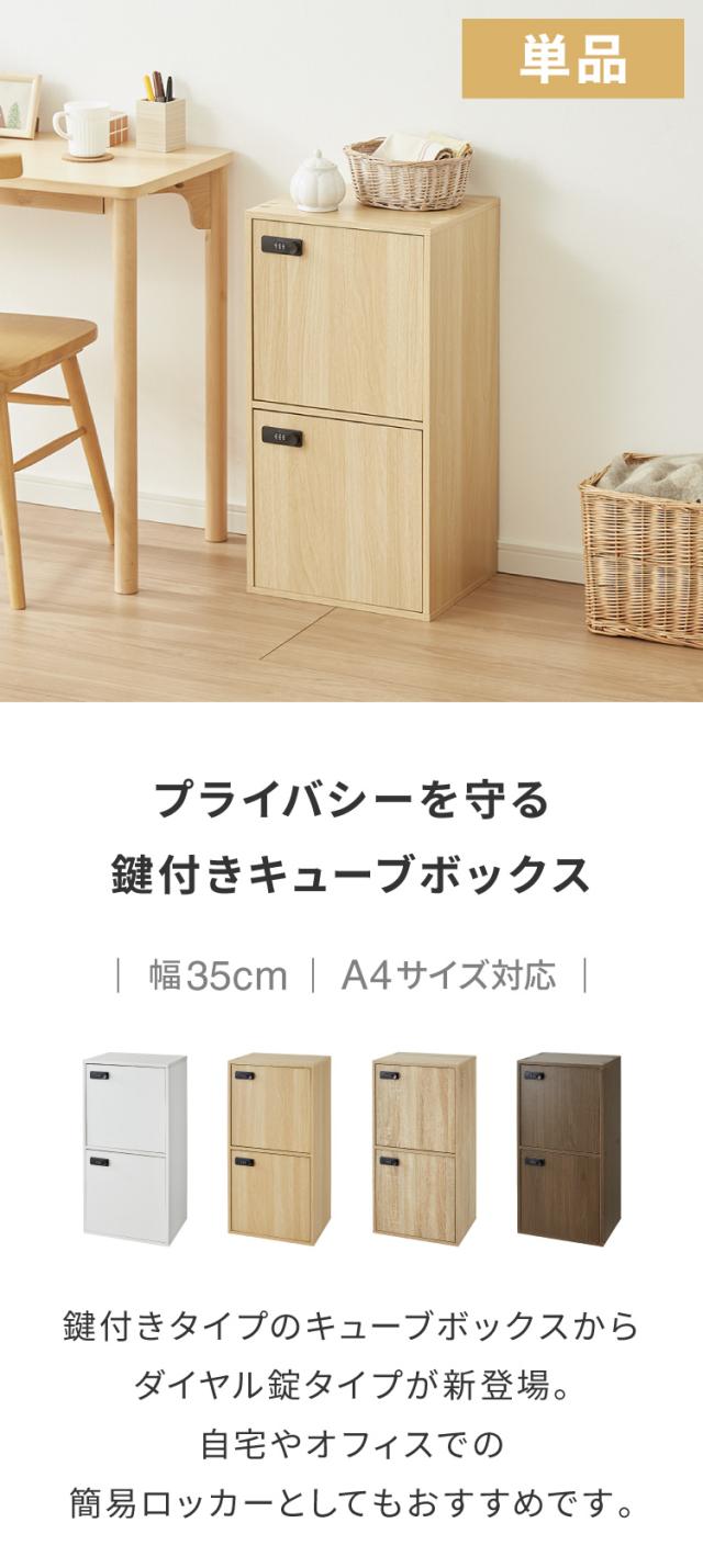 キューブボックス 鍵付き 木製 2段 A4 単品 木目 扉付き 幅35cm レイアウト 自由自在 ダイヤル 収納 収納ボックス ダイヤル錠ボックス カラーボックス 本棚 収納ラック 鍵付きラック 【送料無料】