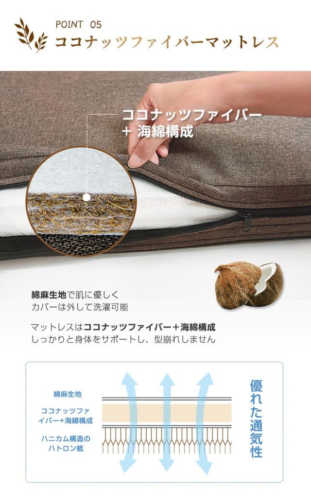 詰め物:ウレタンフォーム、ココナッツファイバー、ポリエステル繊維