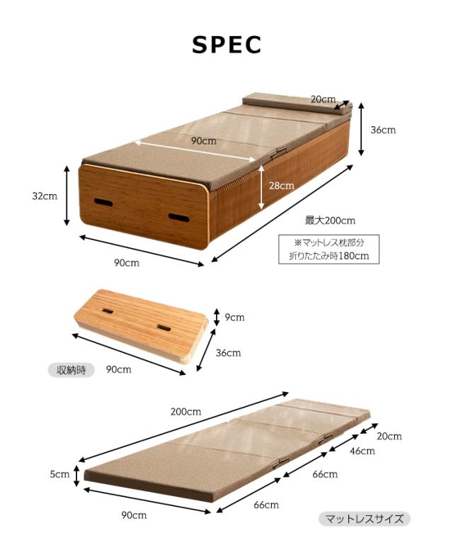 ベッド:幅90×長さ(最大値)200×高さ36(cm)