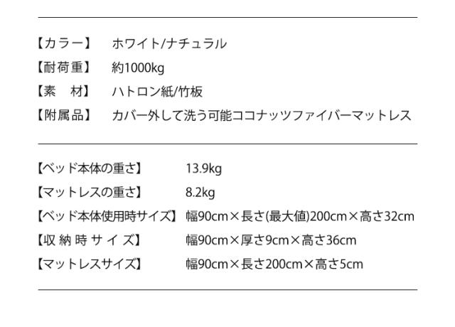 ペーパーベッド セミシングル 幅90cm 耐荷重100kg 伸縮式 撥水 マットレス付き シンプル 北欧 省スペース 来客用 1人暮らし【送料無料】