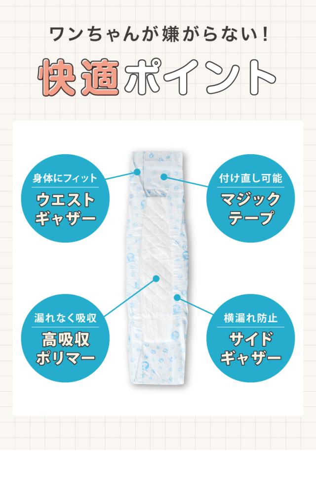 猫、おもらし、お留守番、ドライブ、ドッグカフェ、ペットカフェ、犬のおむつ、トイレタリー、サニタリー、蒸れにくい、吸水、吸収、快適、トイレトレーニング、ウエストテープ、オムツ、漏れにくい、シンプル、ずれにくい、シニア、パピー、臭わない、におわない