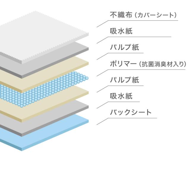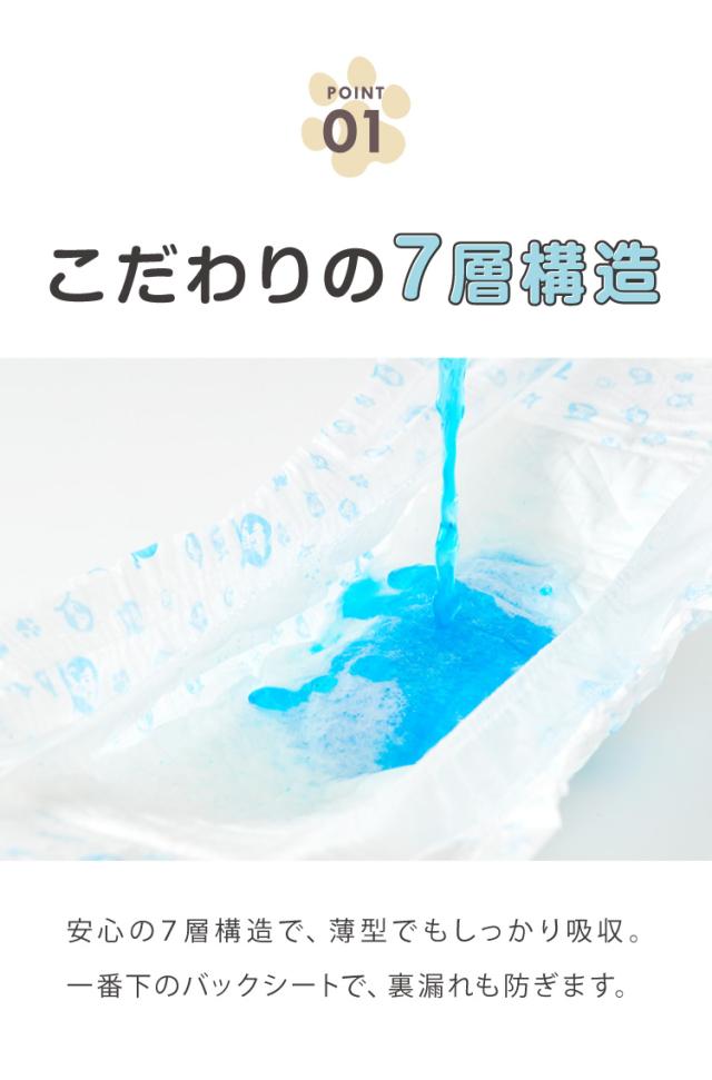 ・7層構造でしっかり吸収、漏れや水戻りを防ぎます。