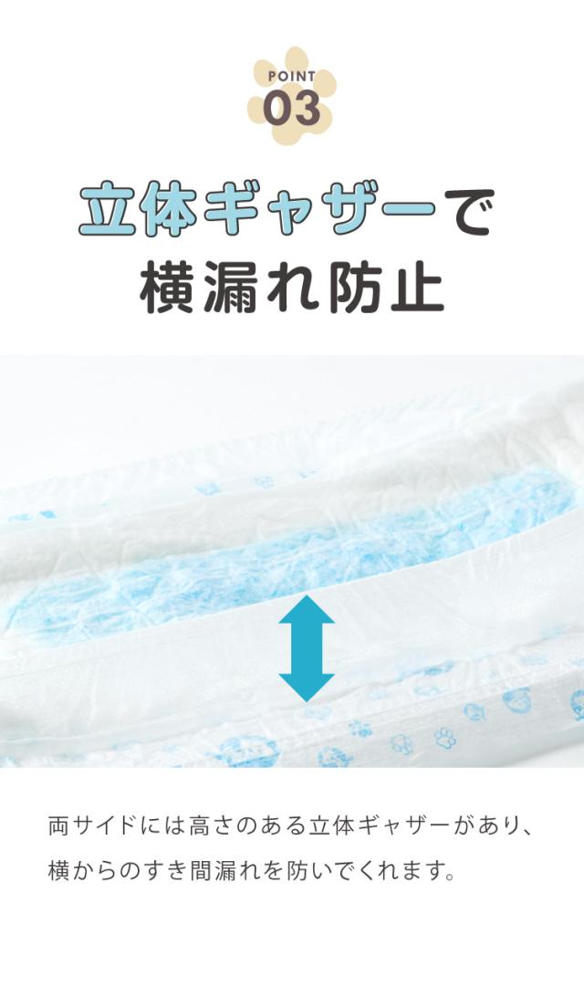・通気性抜群、伸縮ギャザーでわんちゃんが嫌がりにくく様々な場面で活躍。