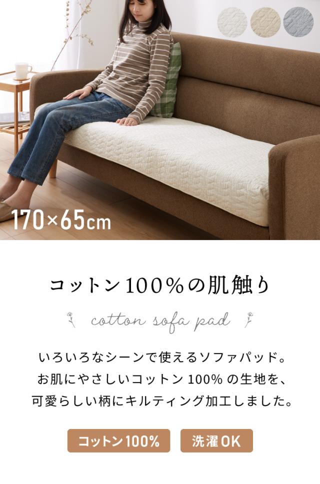 ソファパッド 3人掛け キルト 170×65cm 綿100% コットン 中綿入り 洗える ウォッシャブル 北欧 おしゃれ キルティング ソファカバー ソファシート キルトマット ひざ掛け【送料無料】