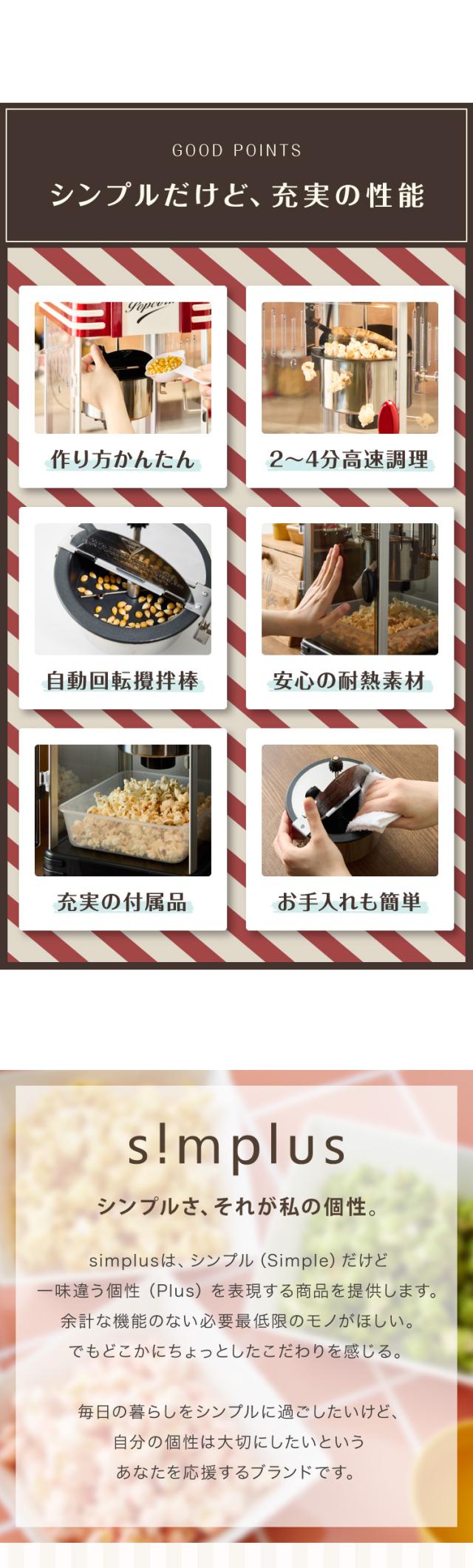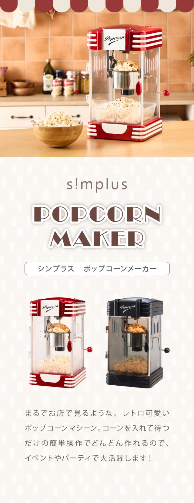 simplus レトロ ポップコーンメーカー ポップコーンマシン 味付け 家庭用 大容量 縁日 お祭り 子供 簡単手入れ イベント 映画観賞 おやつ 【メーカー保証1年】