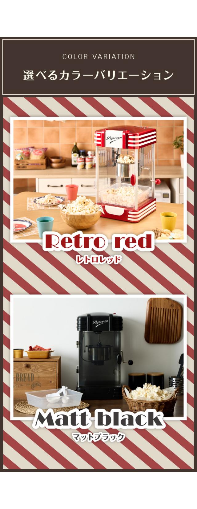 クラシックな赤白レトロカラーとシックなブラックカラーをご用意。インテリアとしても映える、家庭用とは思えないスタイリッシュなデザインです。
