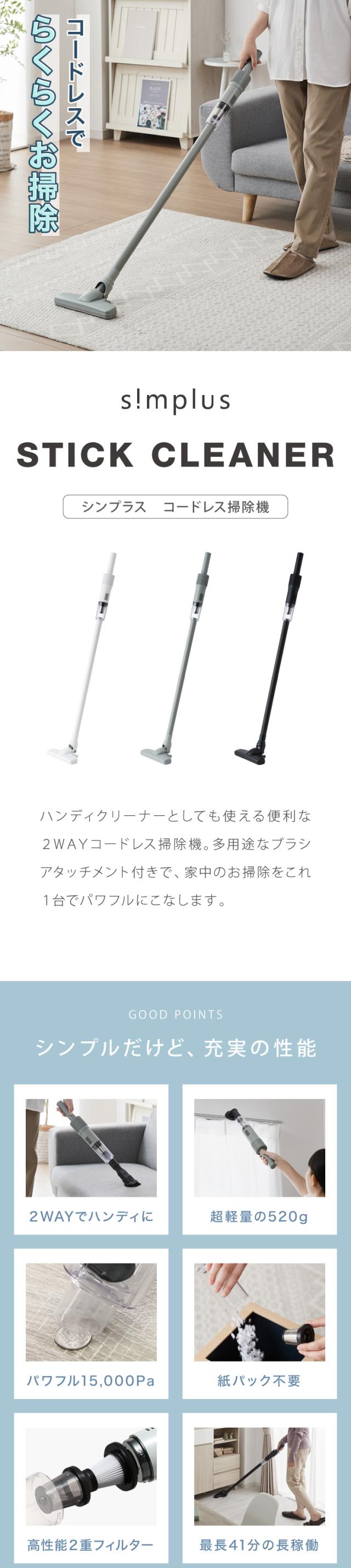 コードレス掃除機 超軽量 紙パック不要 スティック ハンディ 2way simplus 超強力吸引 15000pa 8000pa コンパクト 小型掃除機 車用掃除機 【メーカー保証1年】