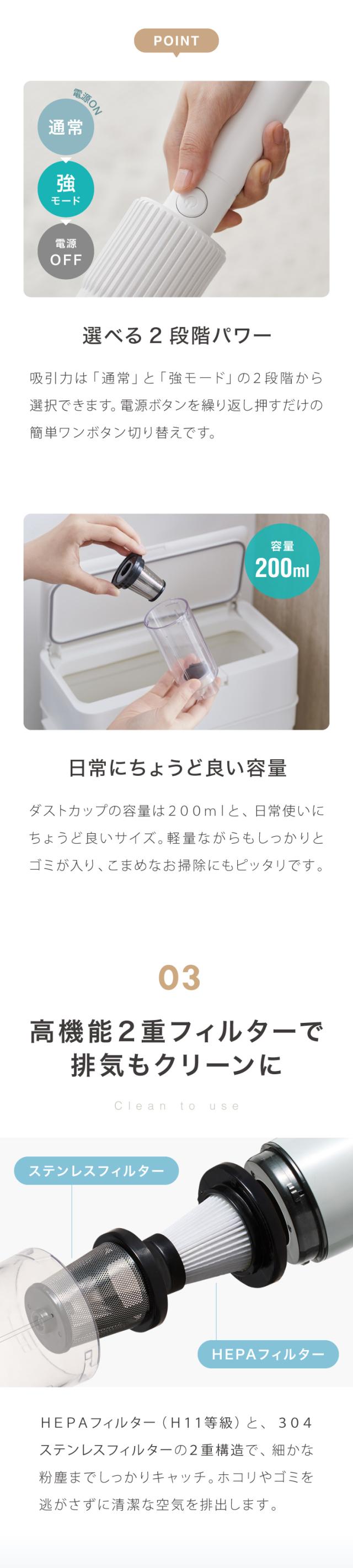 13. ダストカップ容量200ml/日常使いにちょうどいいサイズ