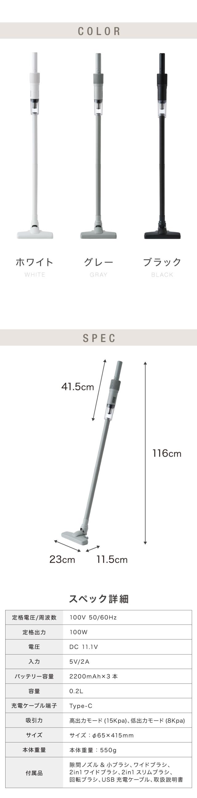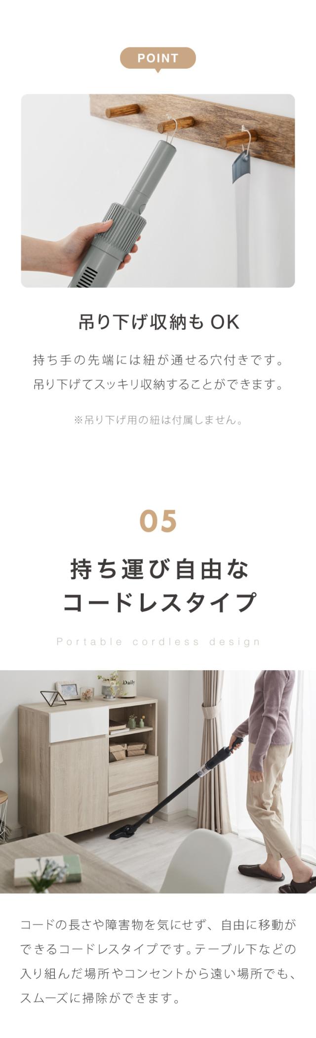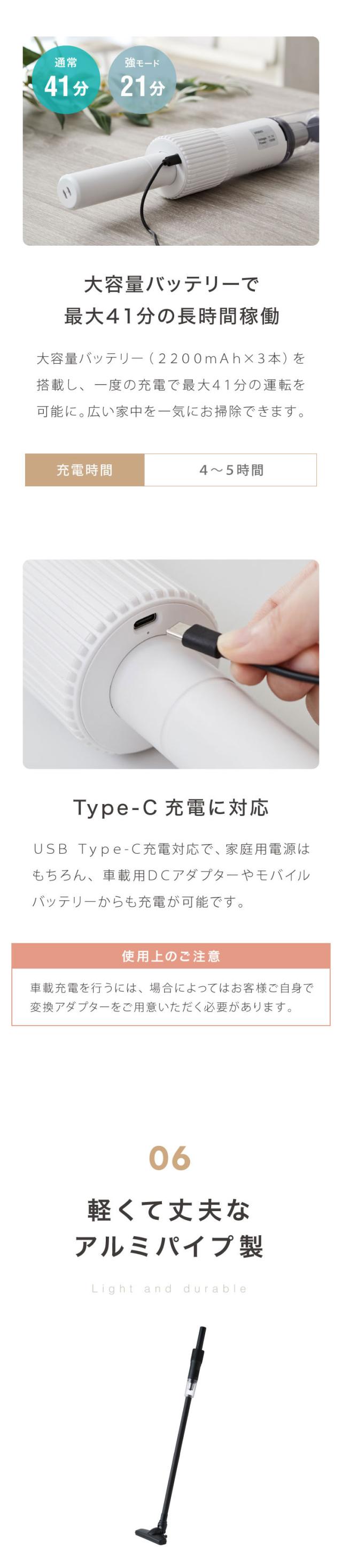 使う場所を選ばず、車内清掃や外出先でも便利に使えます。