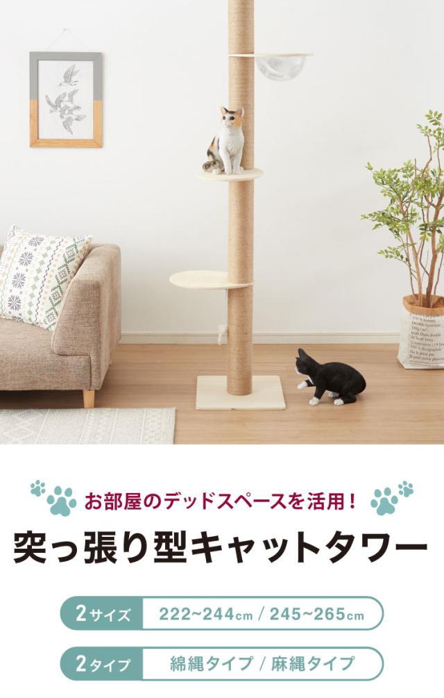 キャットタワー 突っ張り スリム 省スペース 爪とぎ 高さ222-265cm 2サイズあり おもちゃ 宇宙船つき 猫用品 ペット 北欧【送料無料】