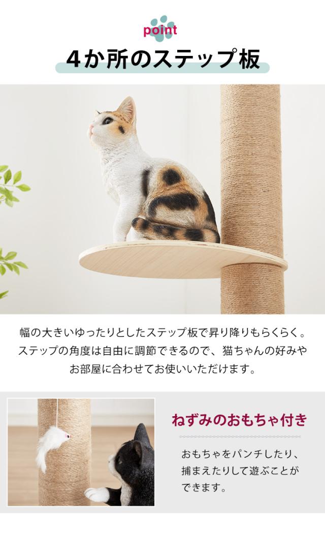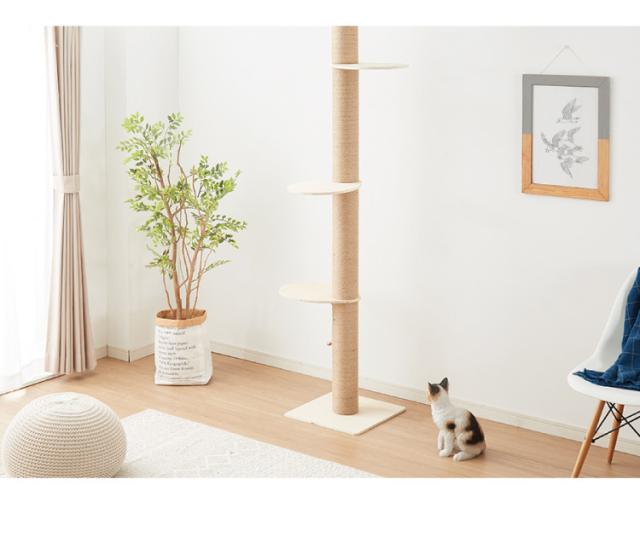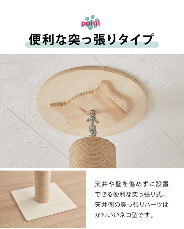 木製、ナチュラル、シンプル、ペット、ペットグッズ、猫、ねこ、ネコ、ポール、スリム、省スペース、ハイタイプ、つっぱり、麻縄、麻縄巻き、爪とぎ、隙間、すき間、つめとぎ、爪とぎ付、4段、ステップ、4段ステップ、簡単組立