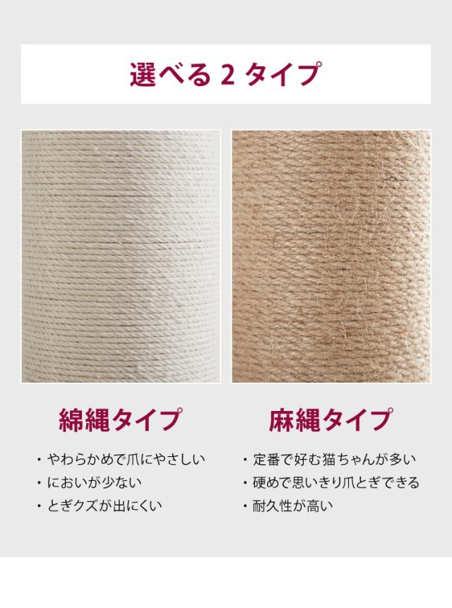 ・支柱には麻縄が巻かれているため、猫ちゃんがいつでも爪とぎできます。
