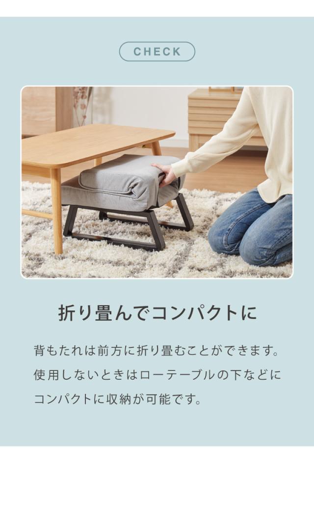 コンパクト座椅子 ファブリック | TVが見やすい座椅子 | コンパクト座椅子 ベロア調生地 | 正座/あぐら座椅子 | |