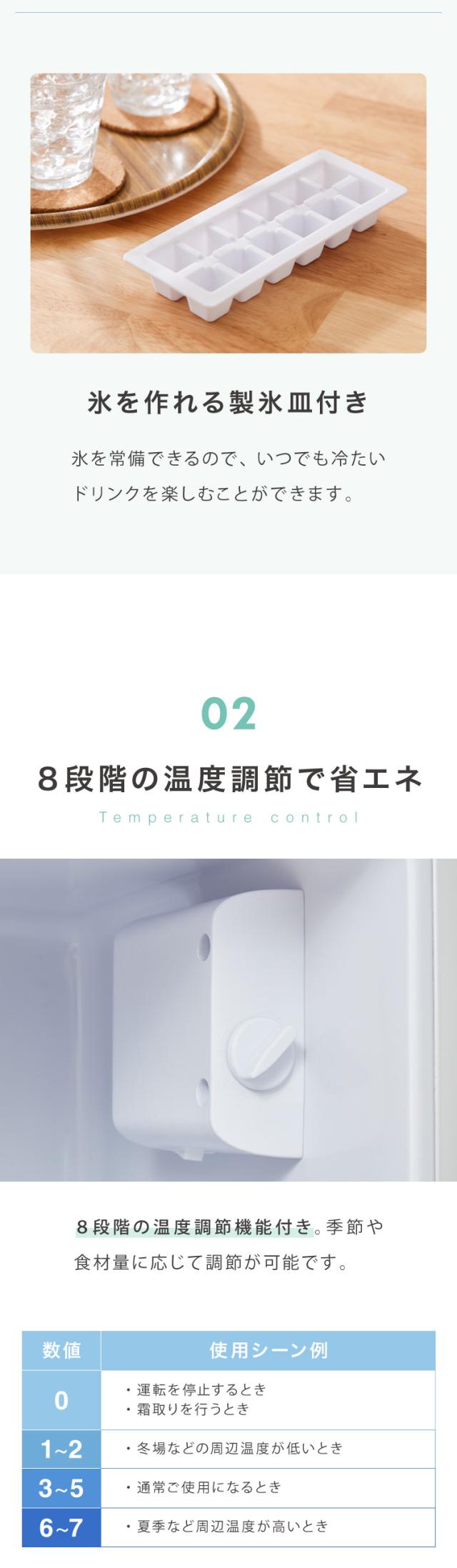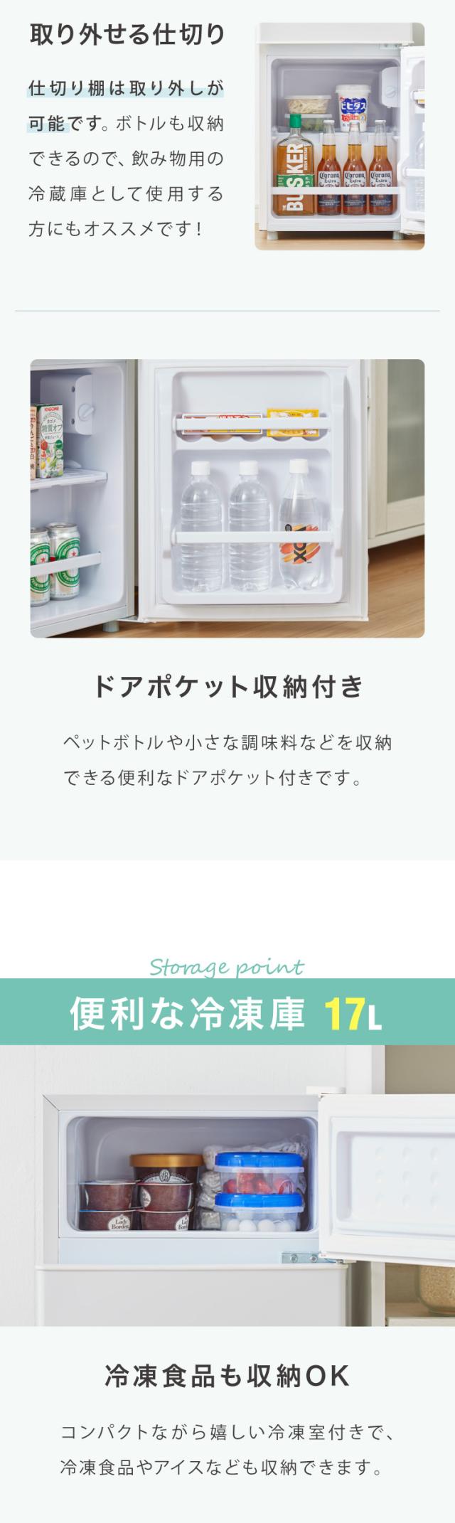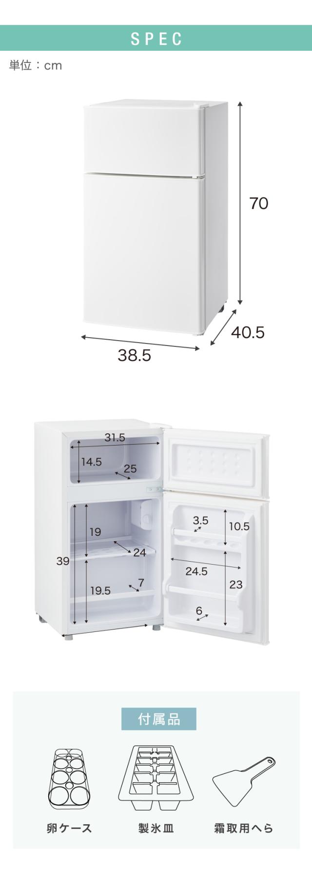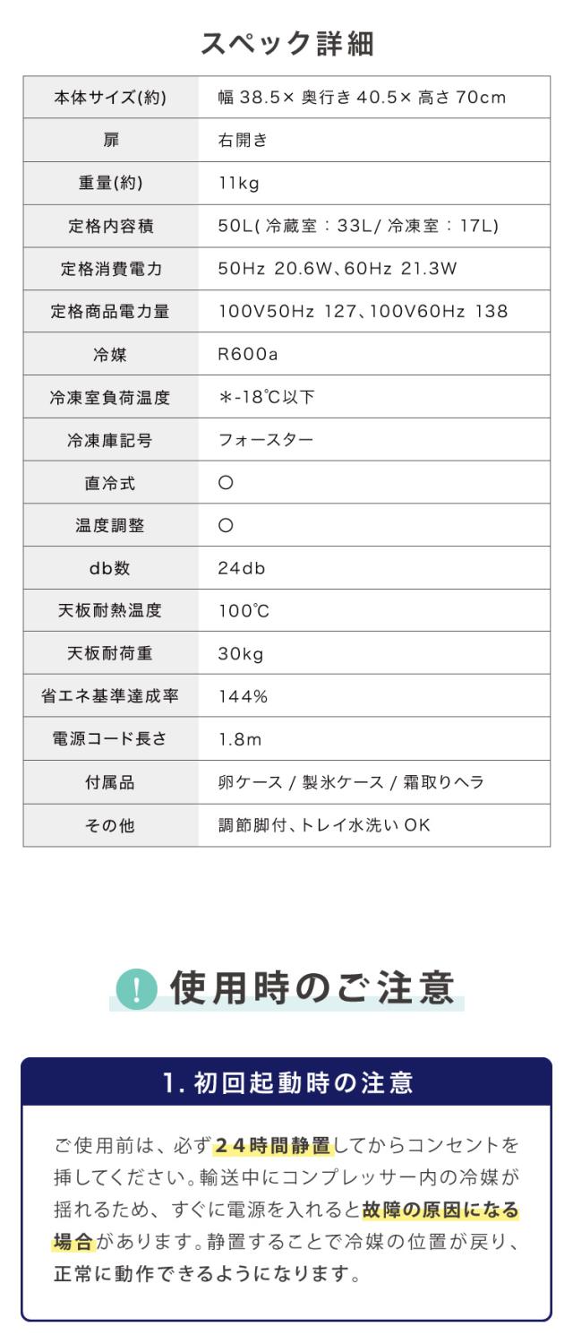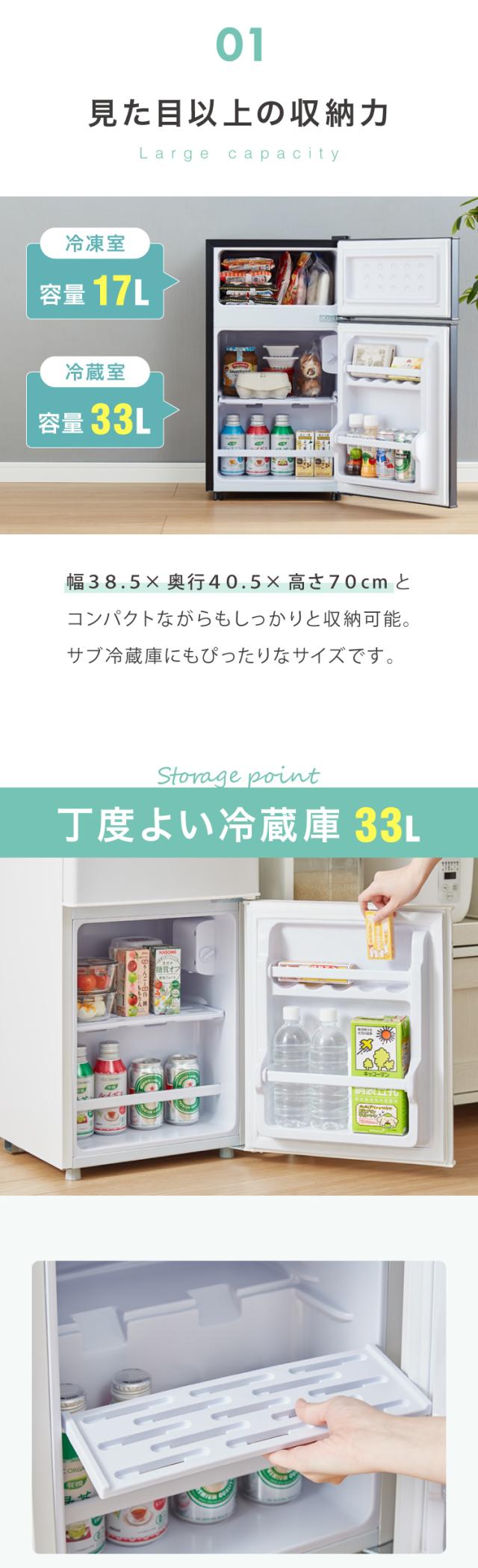 サイズ:50L(冷蔵室:33L/冷凍室:17L)(幅38.5cm*奥行き40.5cm高さ70cm)