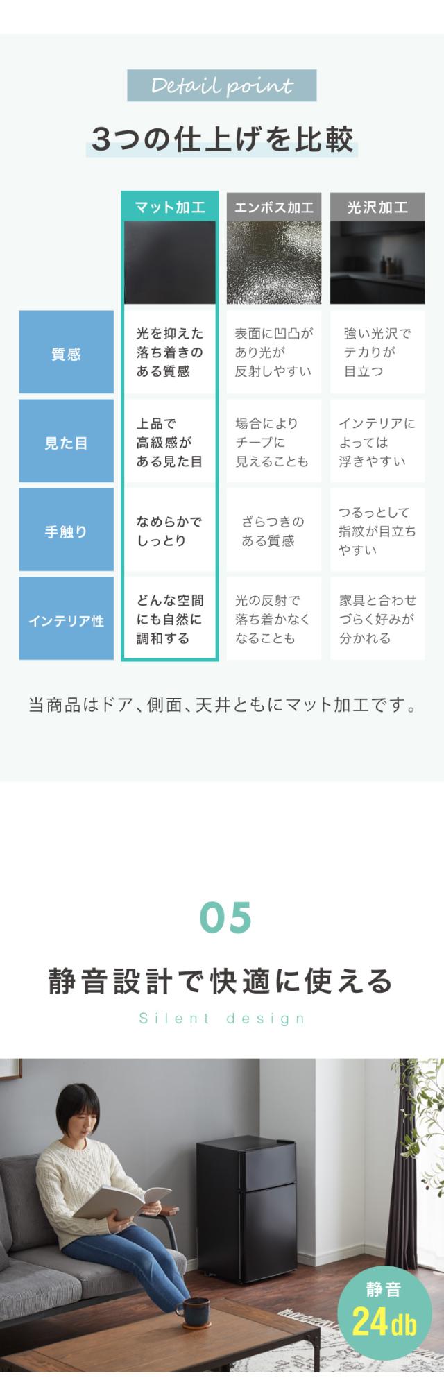 | 1ドア 21L/ガラス扉 | 1ドア 33L | 1ドア 55L/ガラス扉 |