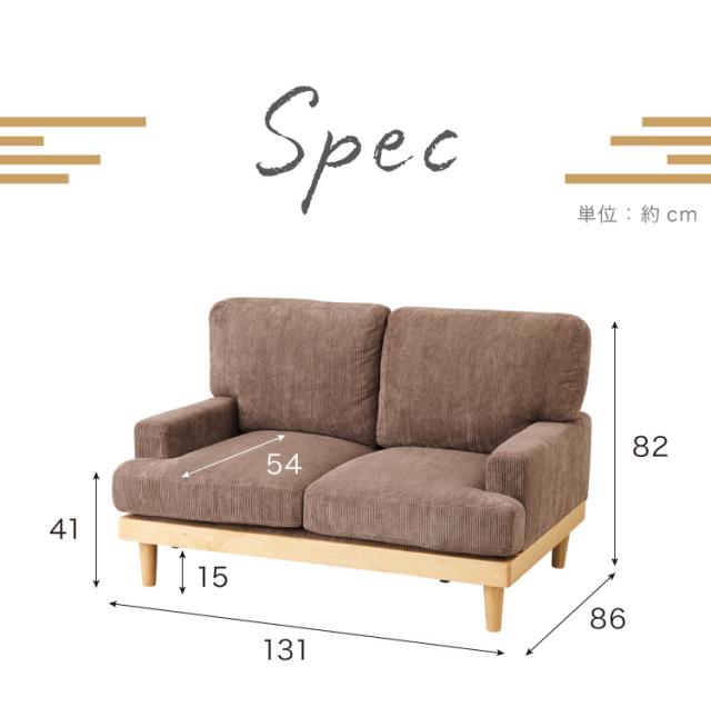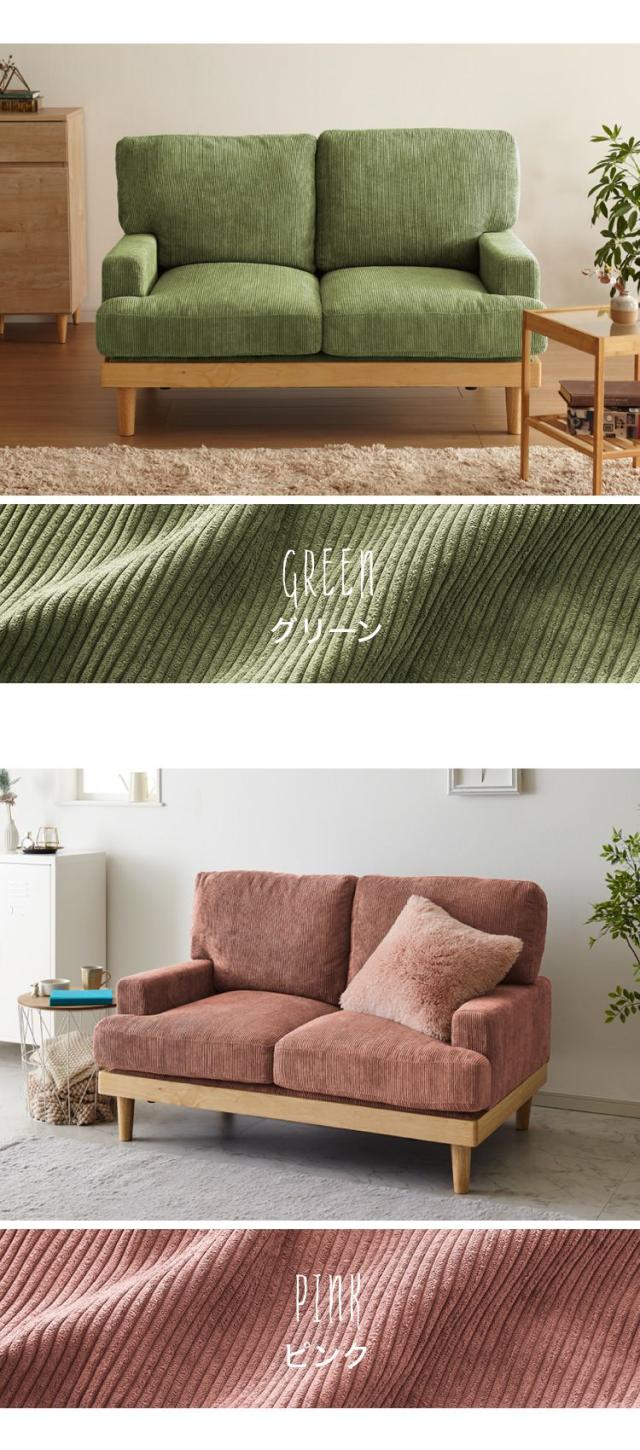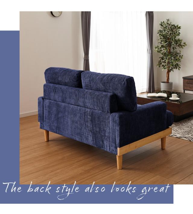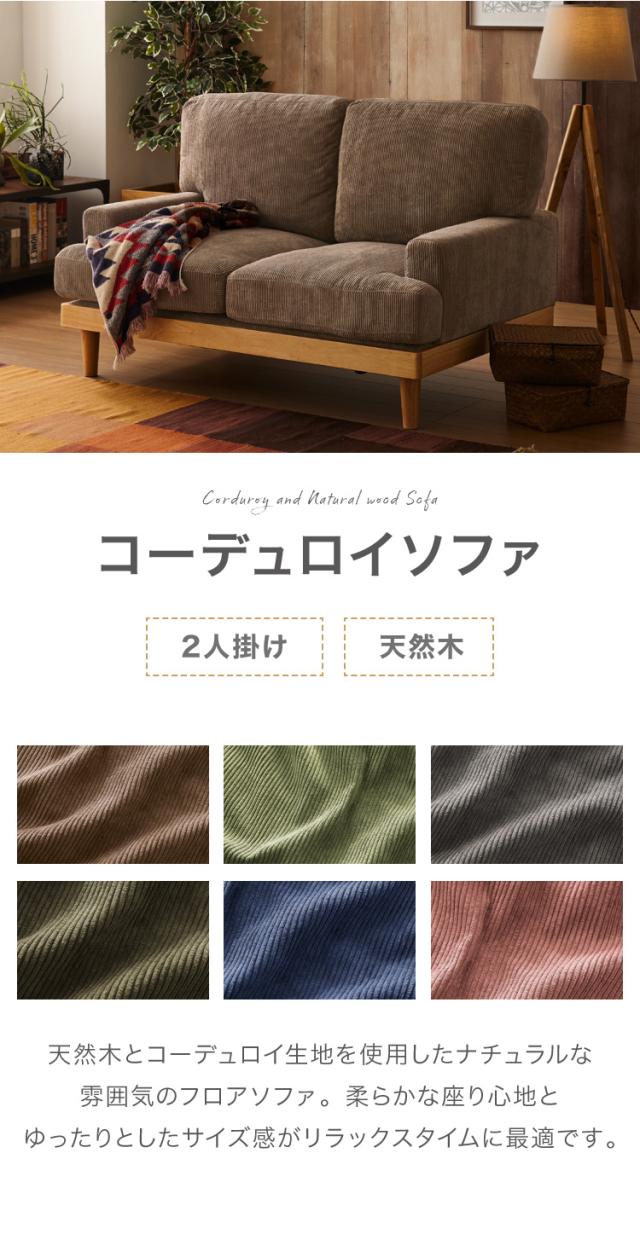 ソファ コーデュロイソファ 幅131cm 完成品 2p 2人掛け ロータイプ 天然木 クッション おしゃれ 北欧 モダン シンプル 一人暮らし コンパクト 肘あり 肘掛け ハイバック(代引不可)【送料無料】