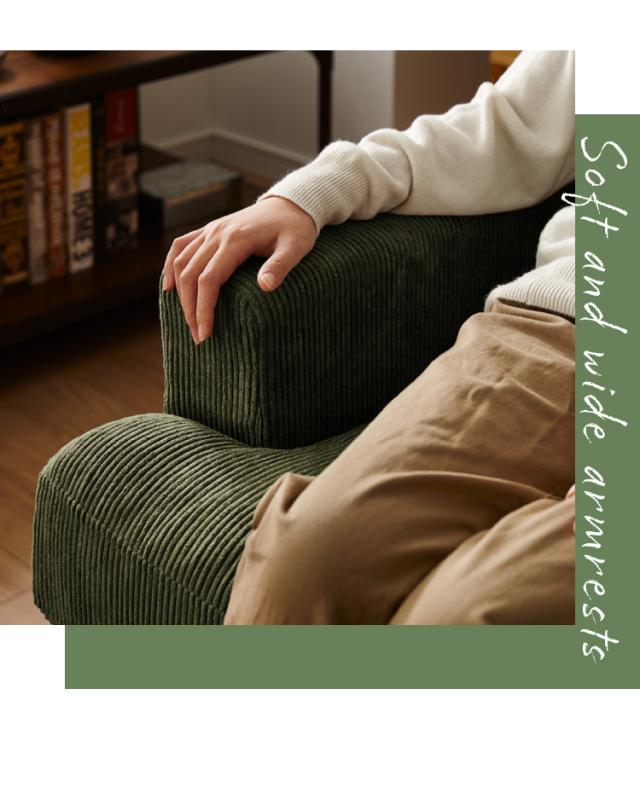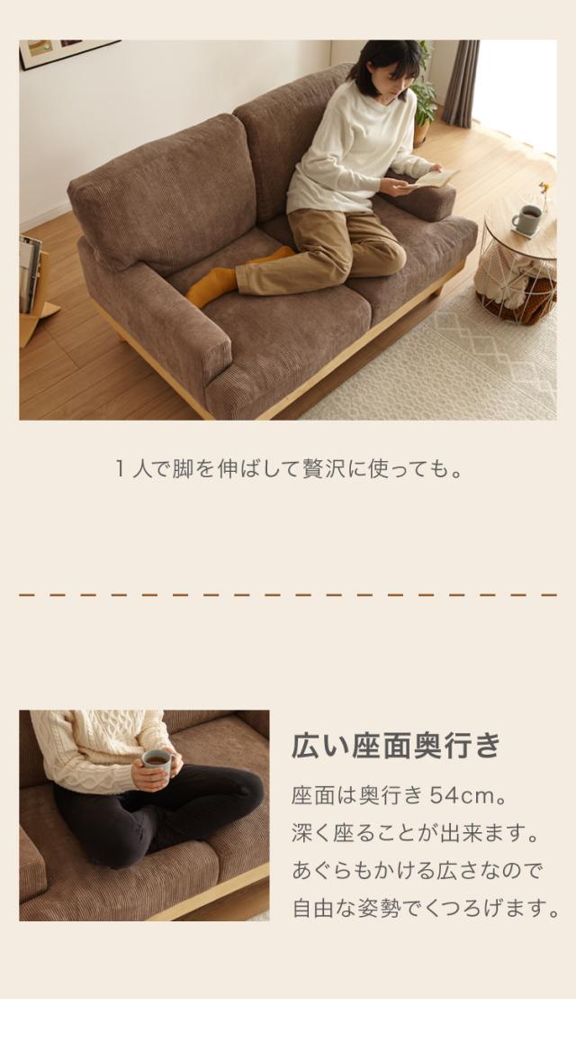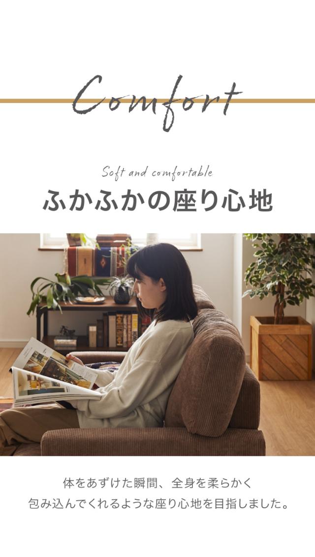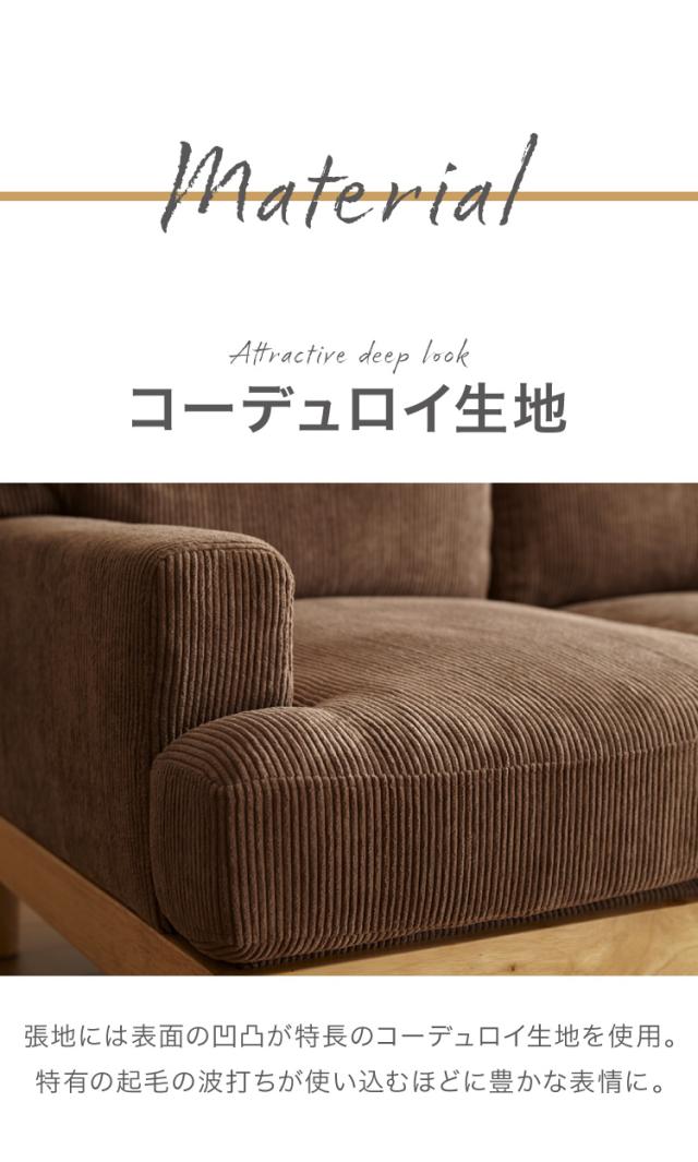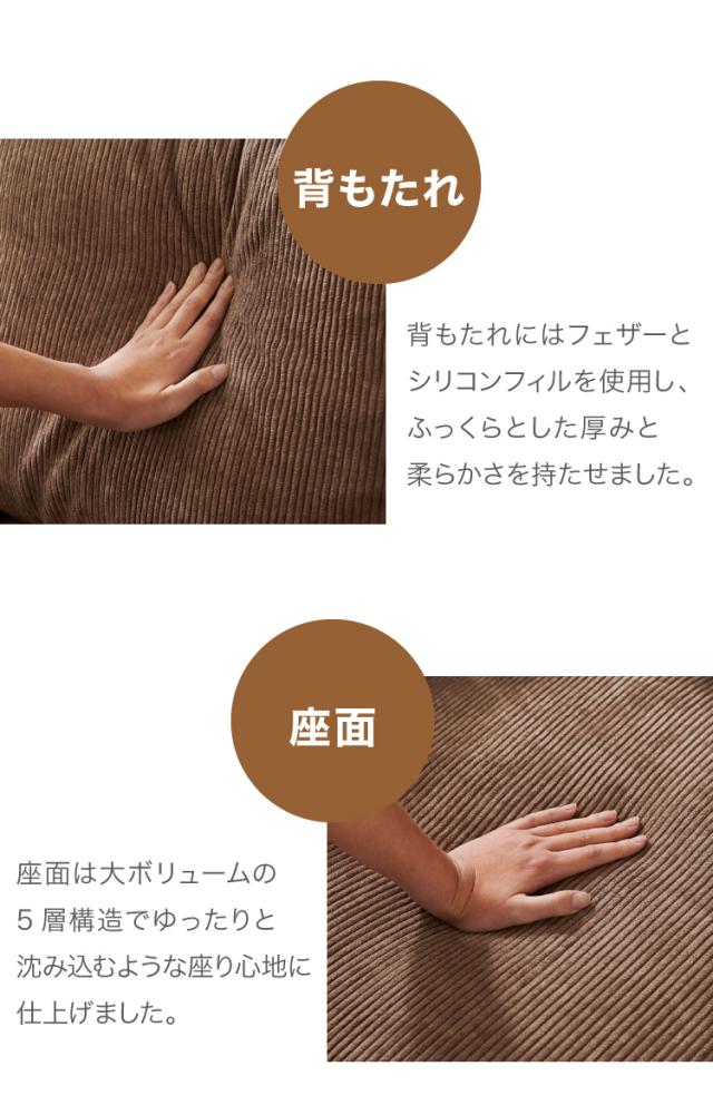 手触り柔らかなコーデュロイ生地で、ずっと座っていたい心地よさが自慢です。